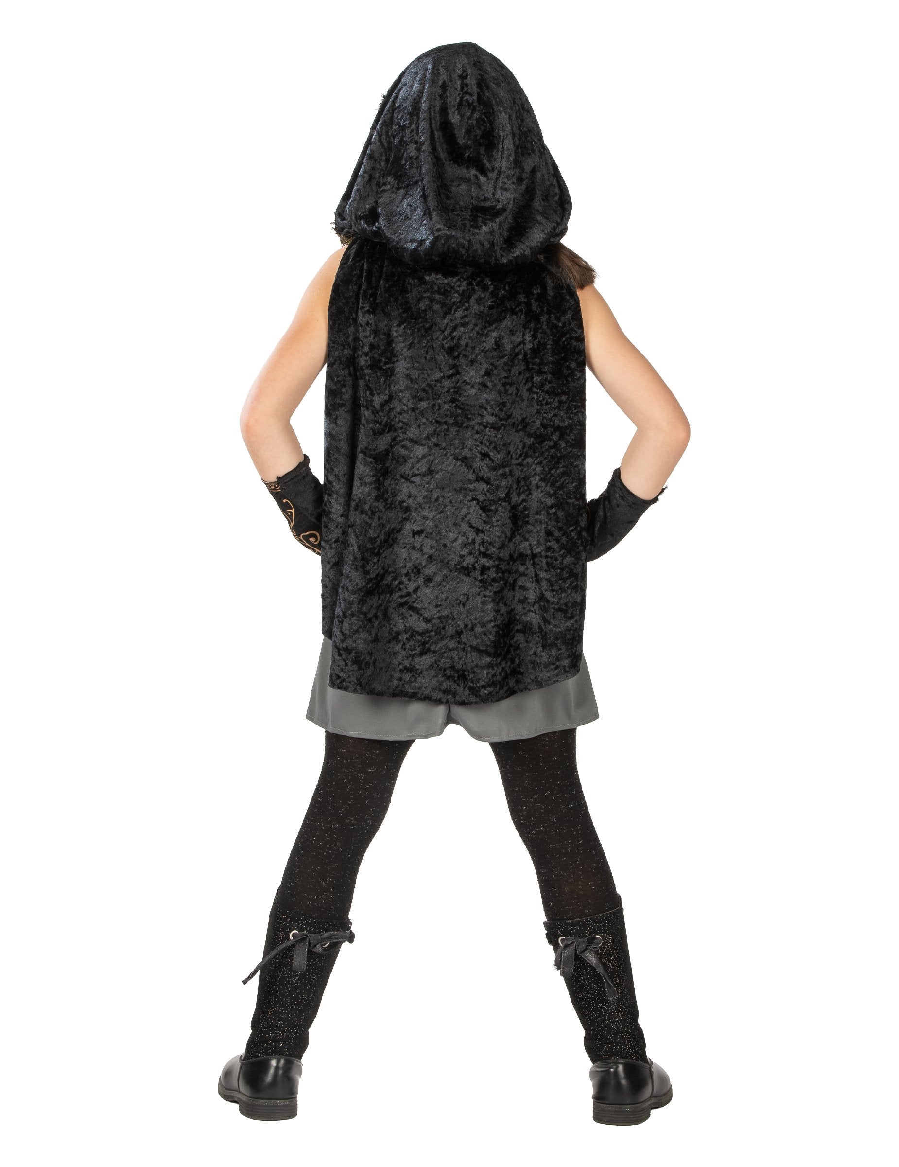 Il costume è molto bello e originale. Preso per mia figlia di 9 anni, la taglia 10-12 anni è adeguata per lei, quindi conviene prendere una taglia in più. Include la veste con effetto tracolla, i polsini, la cintura e il mantello effetto velluto. Tutto di buona fattura. Consigliato
