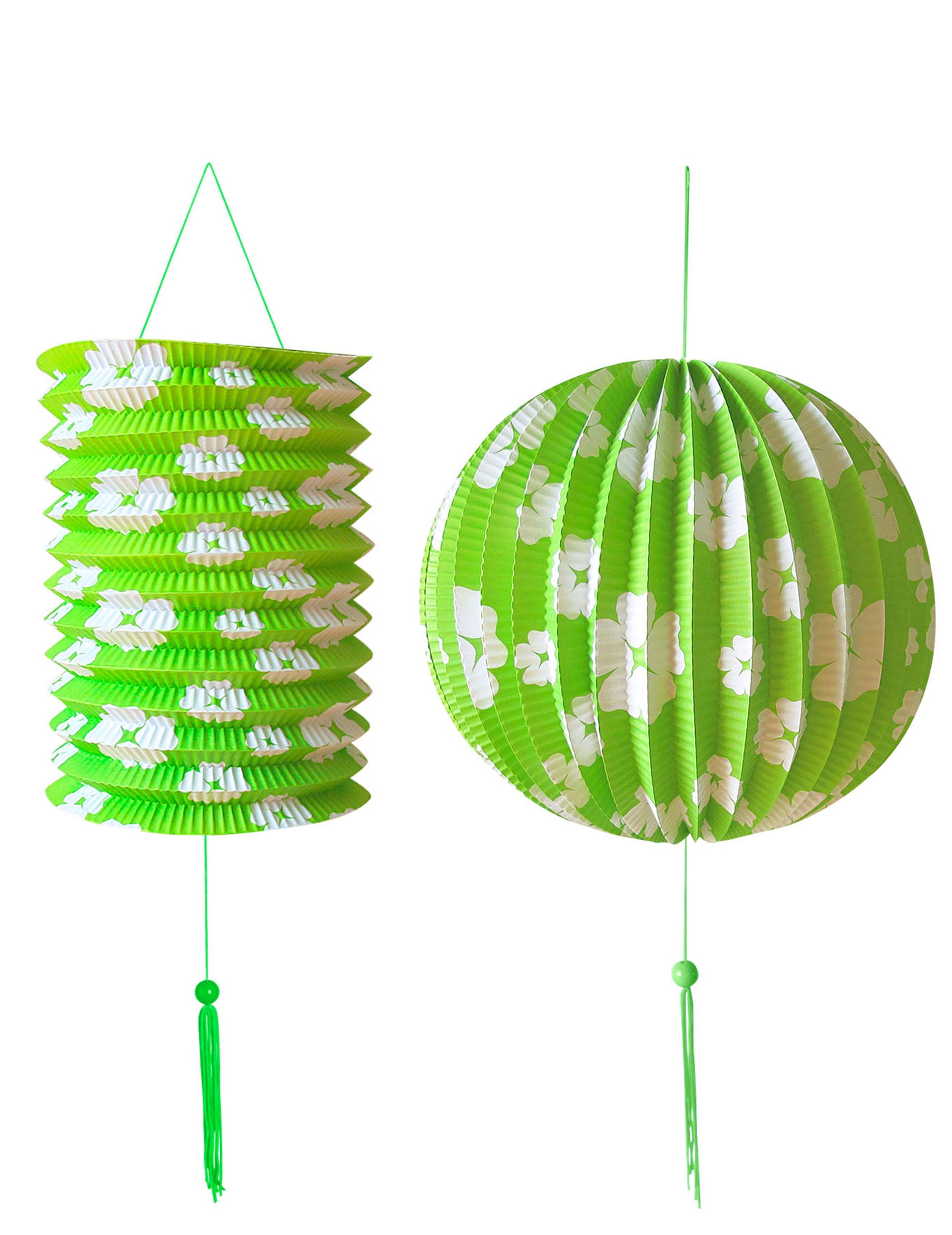 Ez a két lámpás zöld virággal zöld. Ezek papír. Az egyik gömb alakú, a másik hengeres. Átmérője 15 és 23 cm -t mér. Egy szabadtéri virágos esténként ezek a lámpák tökéletesek lesznek. Copyright Widmann SRL