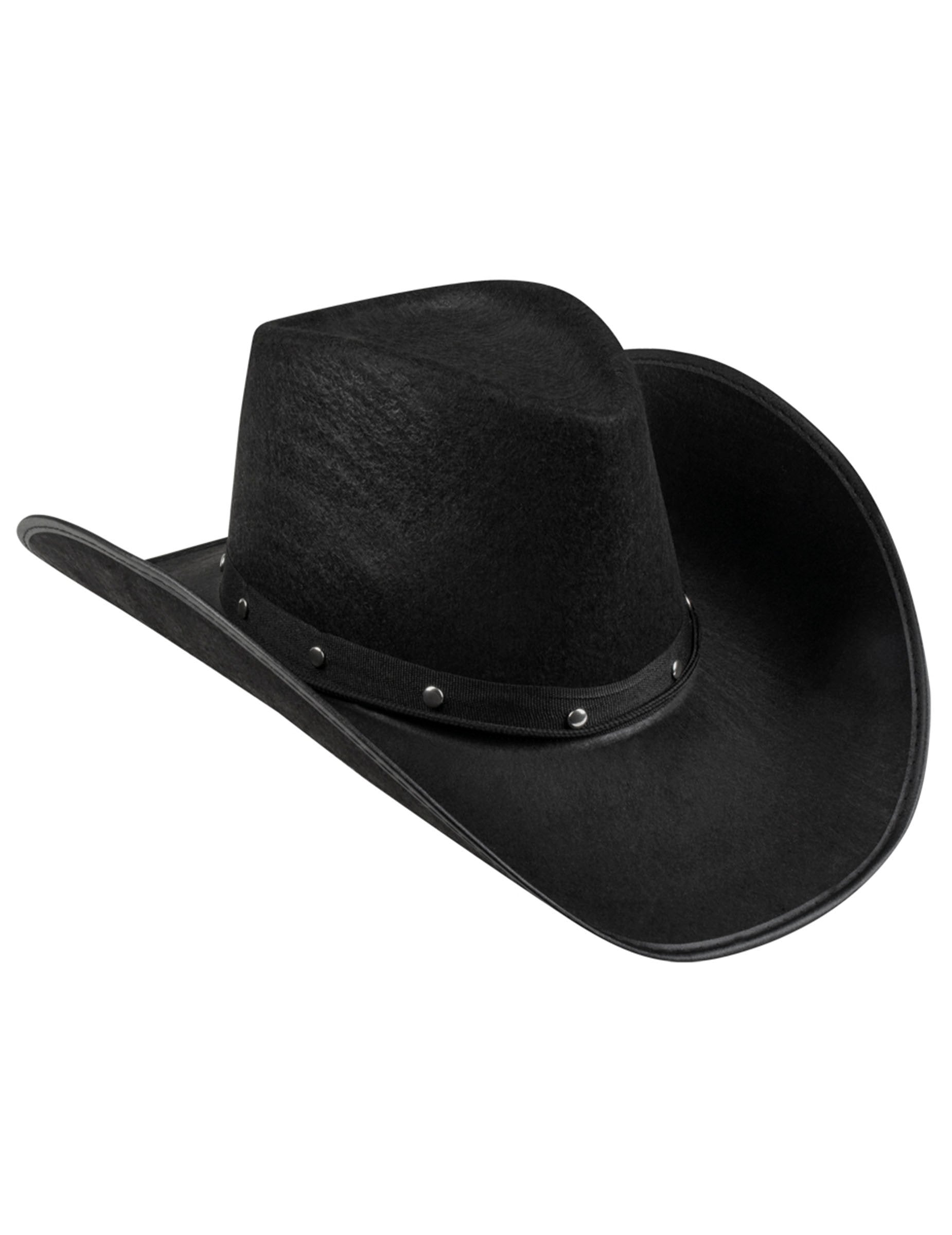 Ez a kalap felnőtteknek szól. Teljesen fekete és filc, egy fekete szegéllyel díszítve, ezüst fém részletekkel díszítve. A fejfedő 61 cm -es fejforduláshoz alkalmas. Készítsen egy tökéletes cowboy ruhát ezzel az alapvető kalaptal!