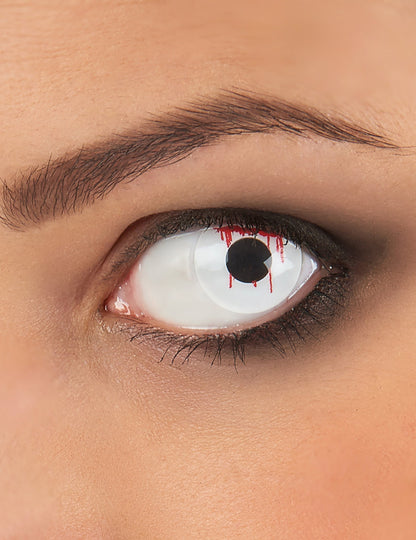 Ezek a divatos lencsék korrekció nélkül felnőttek számára készültek. Körülbelül 14,5 mm átmérőjűek. A lencsék a kinyitást követően 3 hónapig használhatók. Kérjük, olvassa el a mellékelt felhasználói kézikönyvet. Könnyen alkalmazkodhat a szemhez, és az írist vörös sérüléssel díszítik fehér alapon. Tökéletes lesznek, hogy az utolsó érintést hozzák a Halloween jelmezéhez, és egy pillanat alatt megijesztsék barátait!