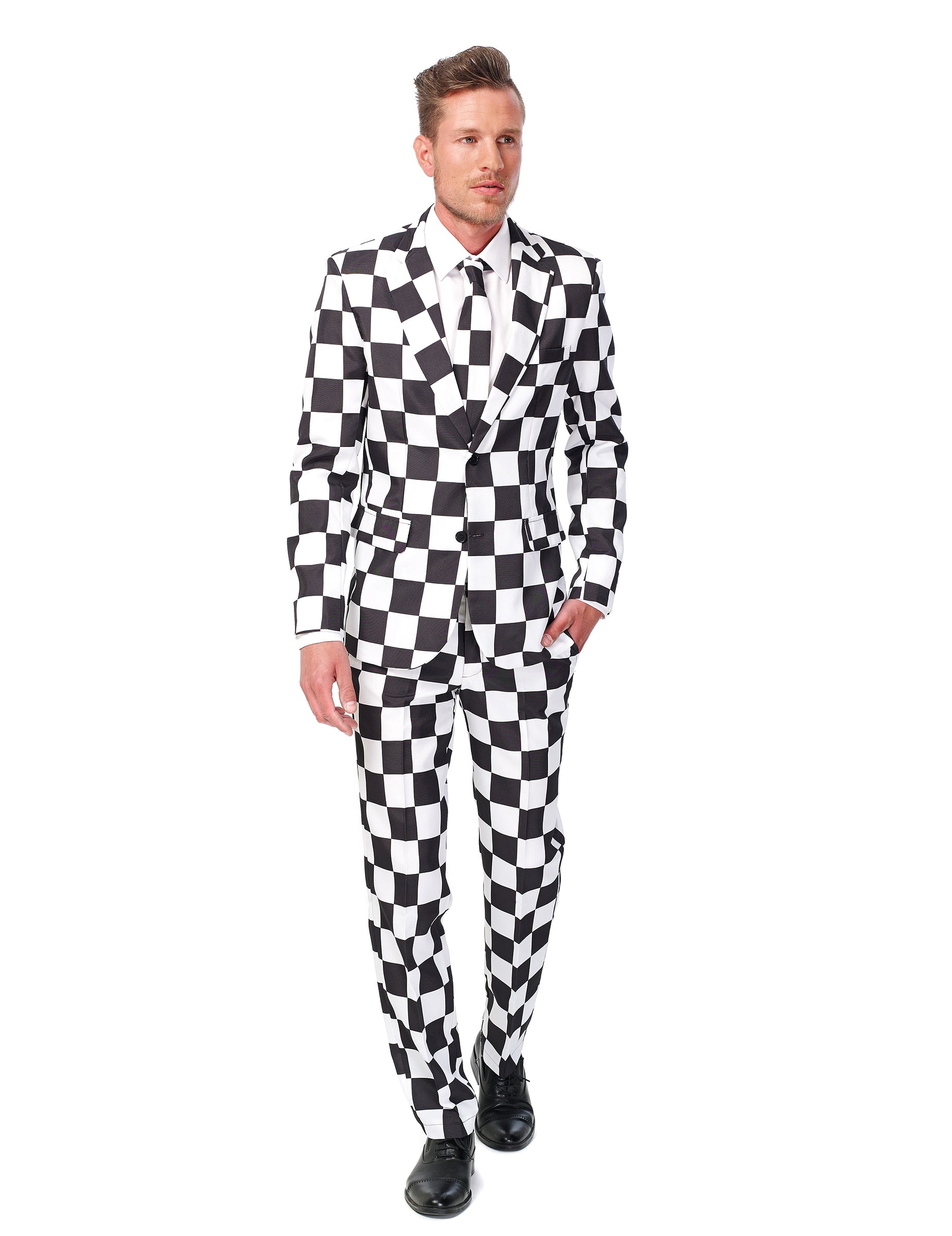 Ez a fekete-fehér jelmez a Suitmeister™ márkától egy zakóból, egy nyakkendőből és egy nadrágból áll (az ing és a cipő nem tartozék). A jelmez teljes anyaga kiváló minőségű, fekete-fehér kockás szövetből készült. A zakó elején két gombbal záródik. A jelmezt egy nyakkendő egészíti ki, amelyet a nyak köré lehet kötni.
