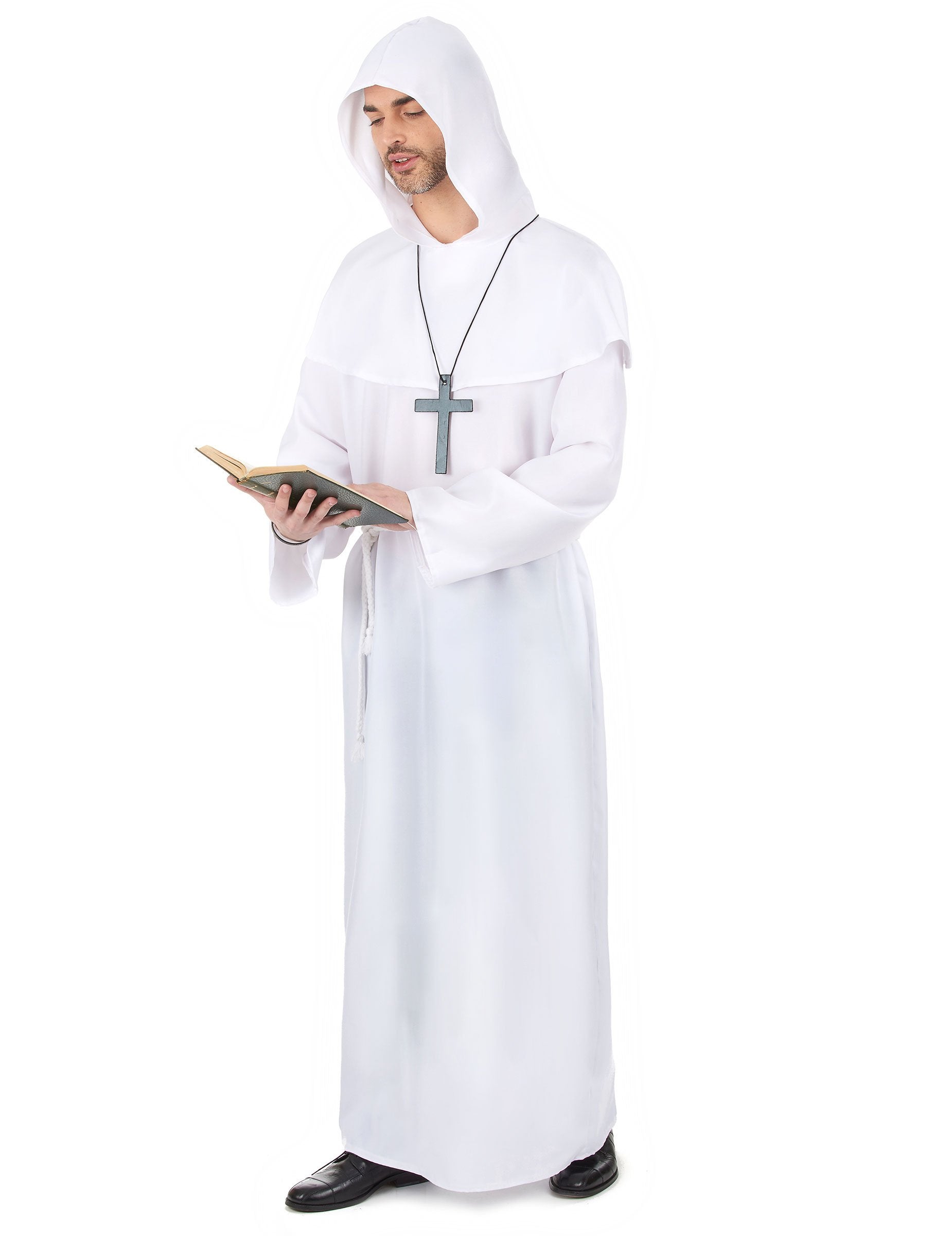 Ez a fehér szerzetes jelmez a férfiak számára hosszú ruhából, keresztből és zsinórból áll. (A könyv és a cipő nem tartalmazza). A ruha meglehetősen vastag, fehér színű. A sapkával rendelkezik. A motorháztető probléma nélkül lefedheti a fejét. A szokást a nyak hátulján lévő link tartja fenn. A vastag szövetkereszt fekete zsinórra is rögzítve. Végül, a fehér kötél a méretével kötődik, hogy tökéletesen kitöltse a jelmezét. Ez a Szeplőtelen Monk jelmez tökéletes lesz egy álruhás nap vagy egy téma alkalmával.