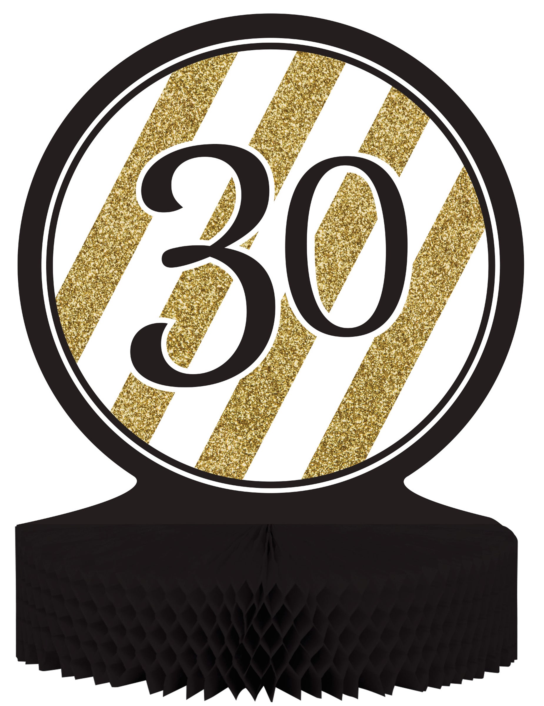 Ez a születésnapi asztali központ kartonból készül. Körülbelül 23 cm átmérőjű kartonkorongból és a fekete dübörgött papír, amely 30 cm átmérőjű, fekete dübörgõ papírból áll. A fekete szélekkel rendelkező lemezen a "30" figurát elülső / hátra nyomtatják a közepén, és arany sávokkal díszítik. A kibontakozás után a méhsejt -papírt egy kis ragasztó javításnak köszönhetően tartják. Ez a középpont tökéletes lesz egy elegáns és arany dekoráció közepén, egy szeretett ember 30 -án!