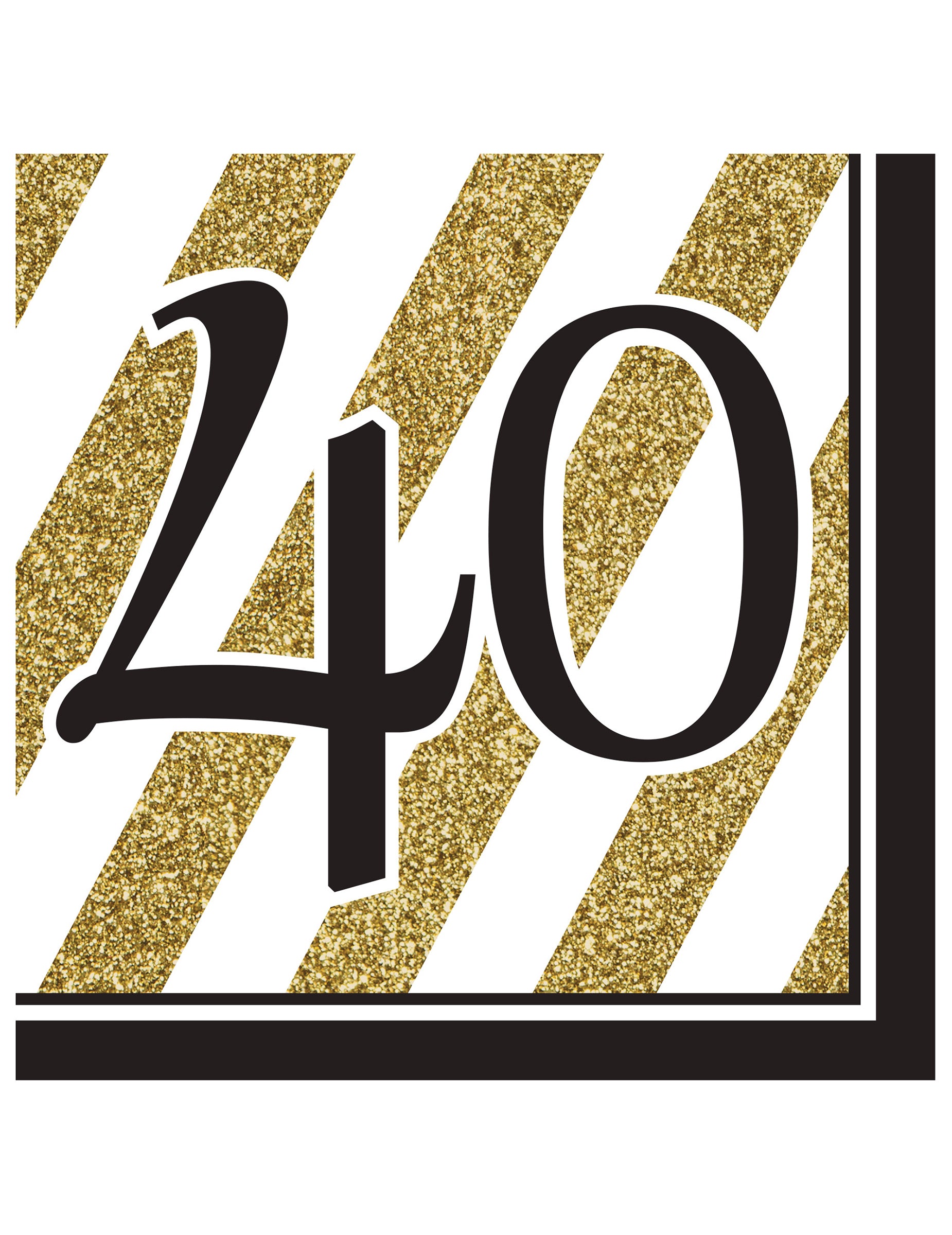Ez a tétel 16 papírtörülközőt tartalmaz 40 évig. Minden törülközőt fehér karcolásokkal és csillogó hatással nyomtatnak. A központban a "40" ábra van jelen. A törülközők 33 x 33 cm méretűek, ha egyszer kibontakoztak. Ezek a születésnapi törülközők ideálisak a fekete és arany dekoráció kitöltéséhez 40. születésnapod során!