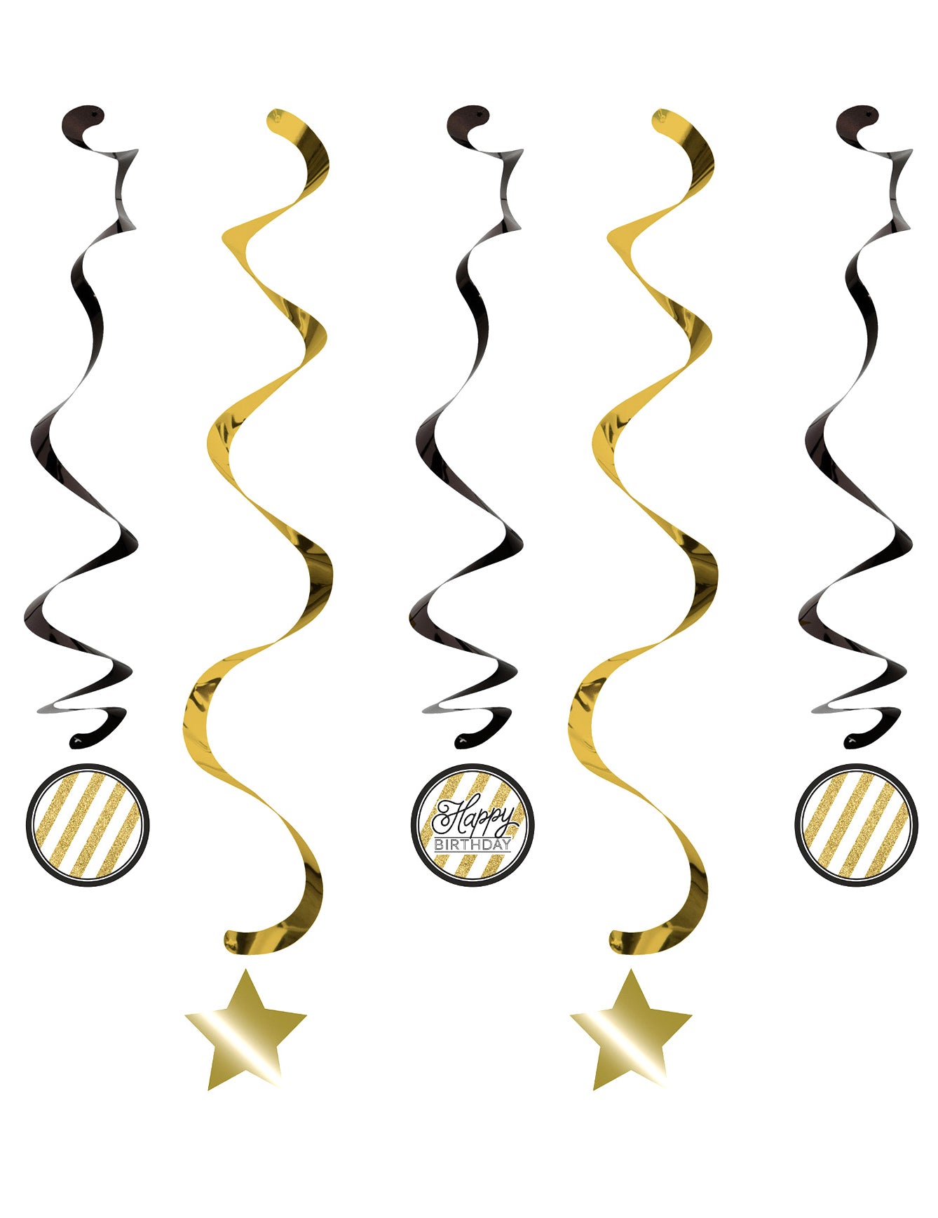 5 felfüggesztés fekete és arany születésnapi spirálban 80 cm