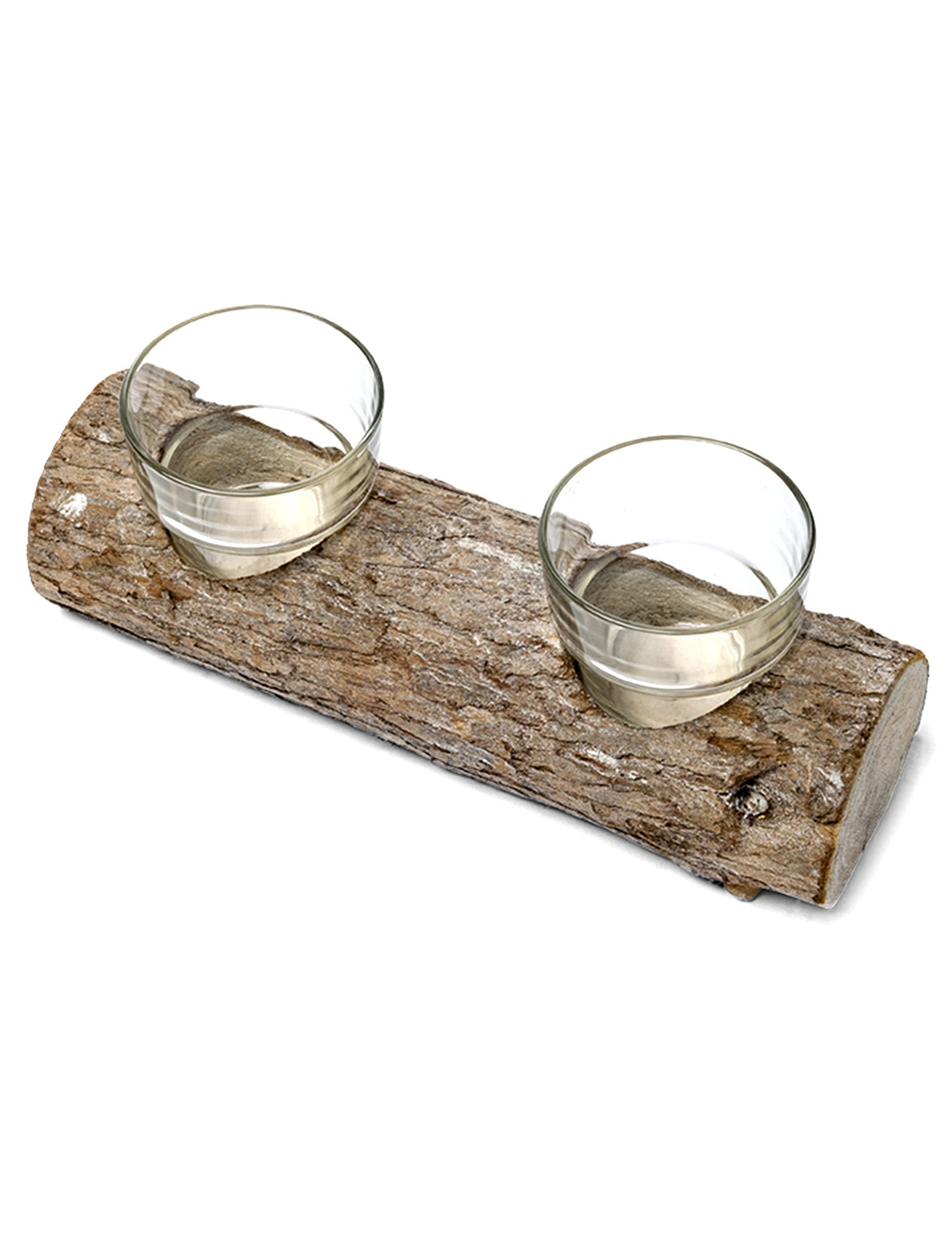 Ez a csodálatos gyertyatartó egy igazán kis dologból áll fatörzs és kettő üveg gyertyatartók.