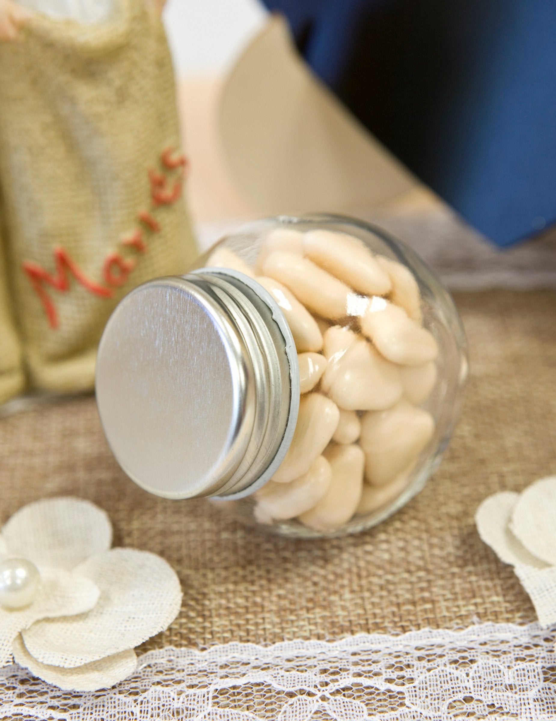 Beszúrás cukrozott mandula belül az Ön alkalmából házasság, vagy használd úgy, mint asztaldísz úgy, hogy homokkal vagy színes vízzel tölti meg babaváró buli vagy egy keresztség.