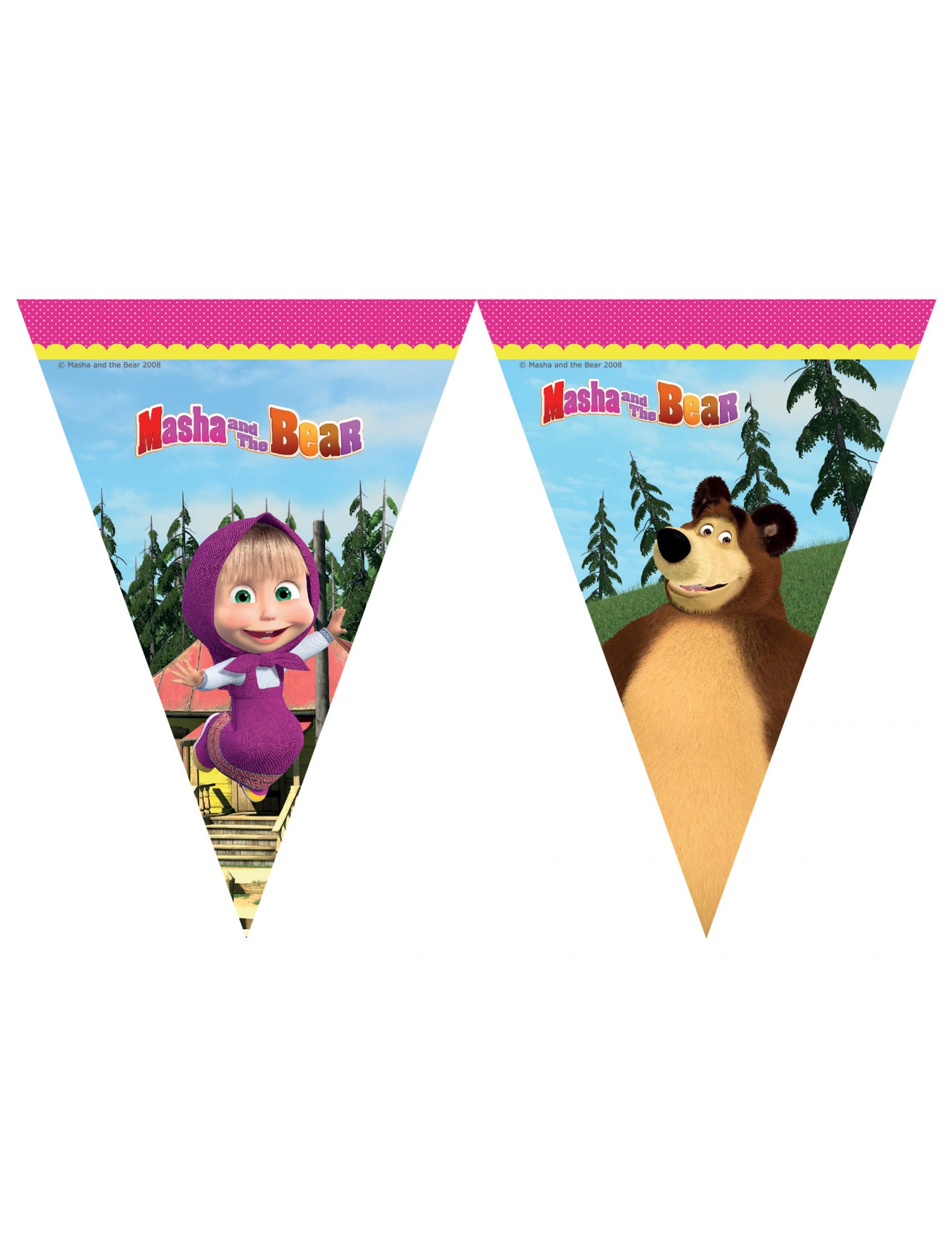 Ez a műanyag születésnapi koszorút hivatalos Masha és Michka licenc alatt áll, és körülbelül 2,30 méter hosszú. Számos nyomtatott fillérből áll, csak elöl, a Masha és a Michka rajzfilm karaktereiből. Ez a Garland tökéletesen díszíti gyermeke születésnapját Masha és Michka témáján.