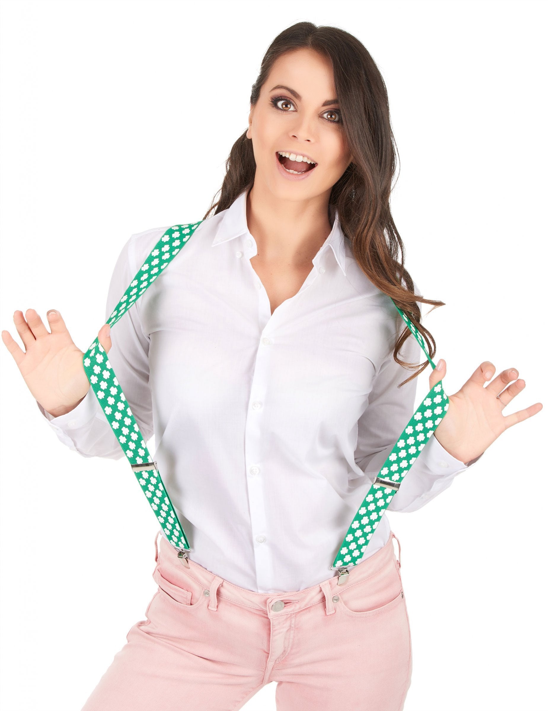 Ezek a zöld harisnyatartók felnőtteknek szólnak. Fehér lóhere nyomtatva vannak. Elasztikus, ezek a hevederek állíthatók és fémhorogokkal szorosak. Ezek tökéletesek lesznek a ruhád kitöltéséhez és az alapvető zöld érintéshez, amelyet Szent Patrick napján kell viselni.