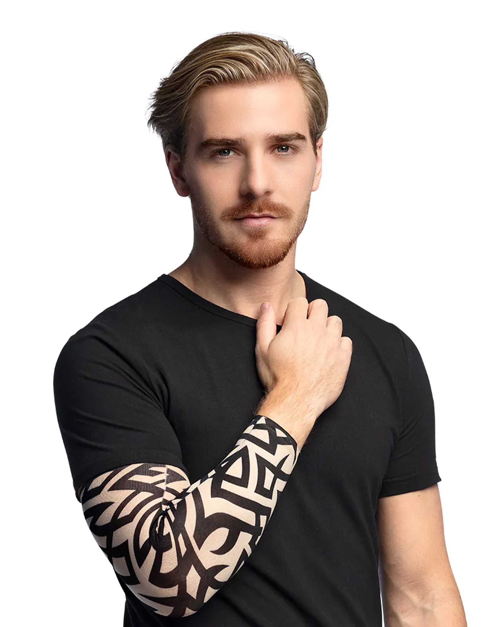 Ez a nylon fogantyú hússzín, hamis fekete törzsi tetoválásokkal. Nagyon rugalmas, ez a hüvely könnyen alkalmazkodik a morfológiájához, és azt az illúziót adja, hogy a tetovált karod van. Ez tökéletes lesz a motoros jelmez kitöltéséhez a karnevál számára.