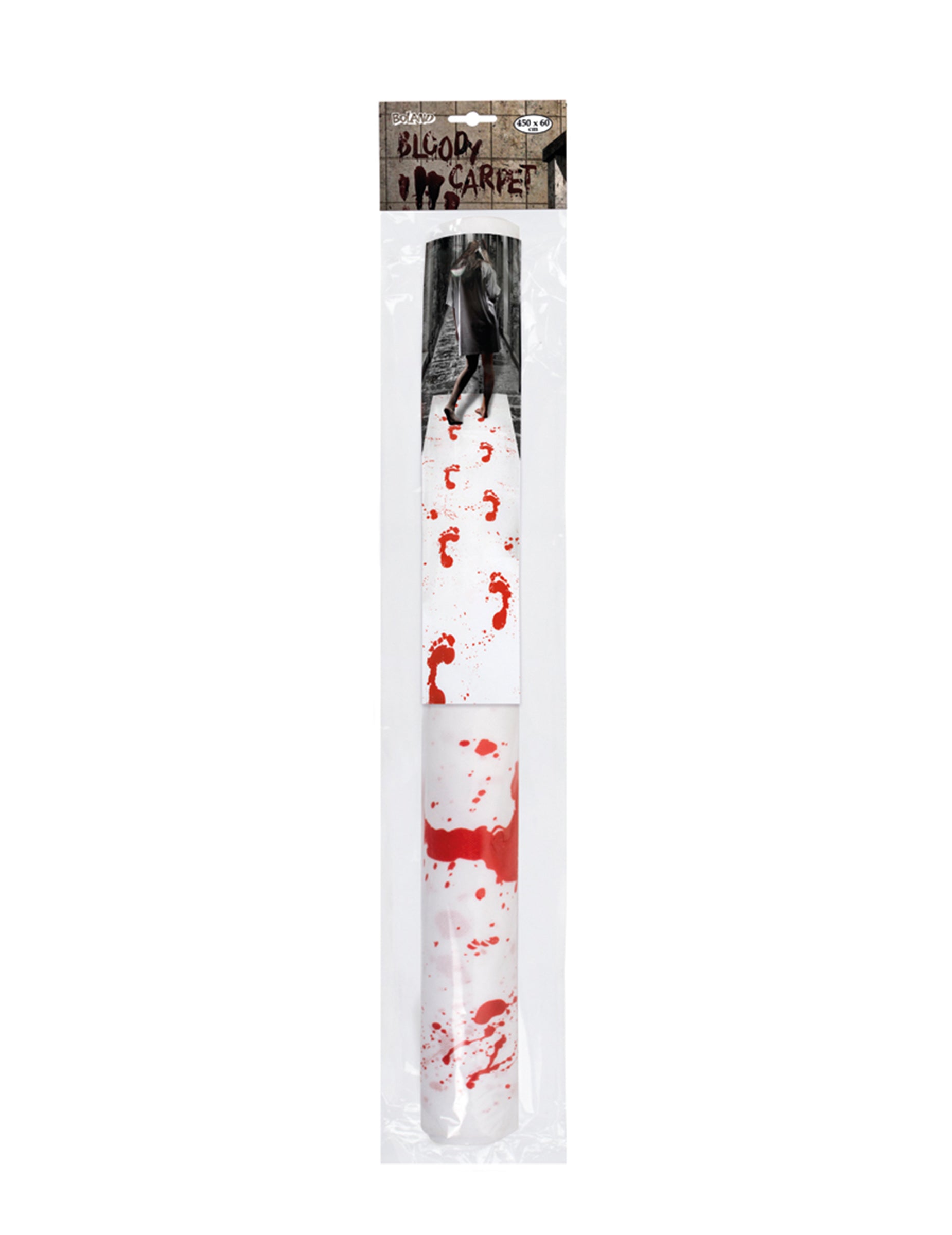 Ez a dekoráció egy 450 x 60 cm -es szőnyeg szőnyeg. Fehér és hamis vérnyomai vannak. Ezeknek lábak alakja vagy egyszerű fröccsenés. Tökéletes lesz a dekoráció befejezéséhez és félelmetes légkör létrehozásához a Halloween estén!