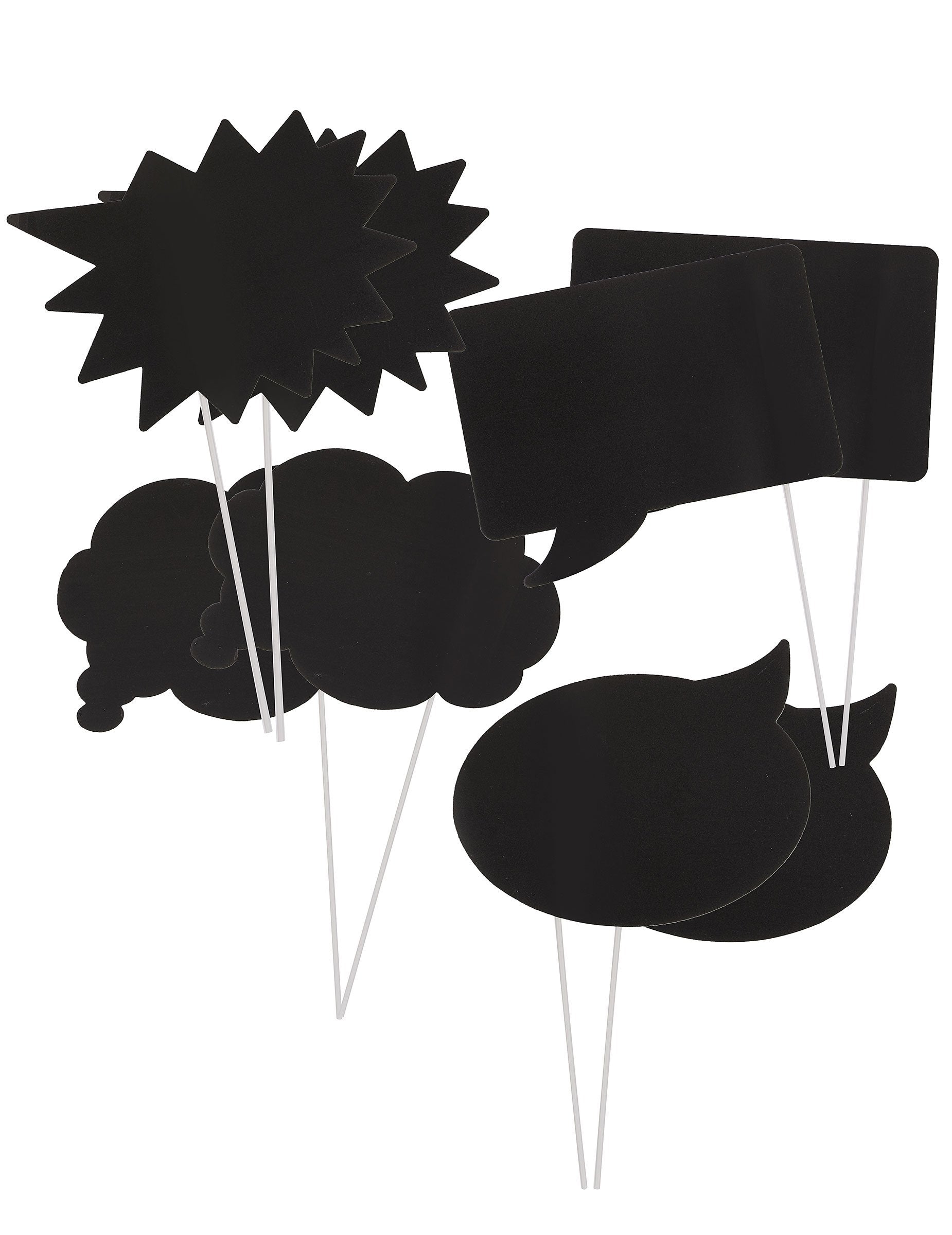 Ez a Photobooth készlet krétából és 8 tartozékból áll. Minden buborék vastag fekete papírban van, és fehér műanyag botja van, lehetővé téve, hogy könnyen karbantartható legyen. Ezen felül 4 buborék modell van, amelyek mindegyike körülbelül 17 cm. A kis extra: kréta, amely lehetővé teszi a kiegészítők személyre szabását! Egy nagyszerű animáció, amely egy kis őrületet ad az ünnepi események során!