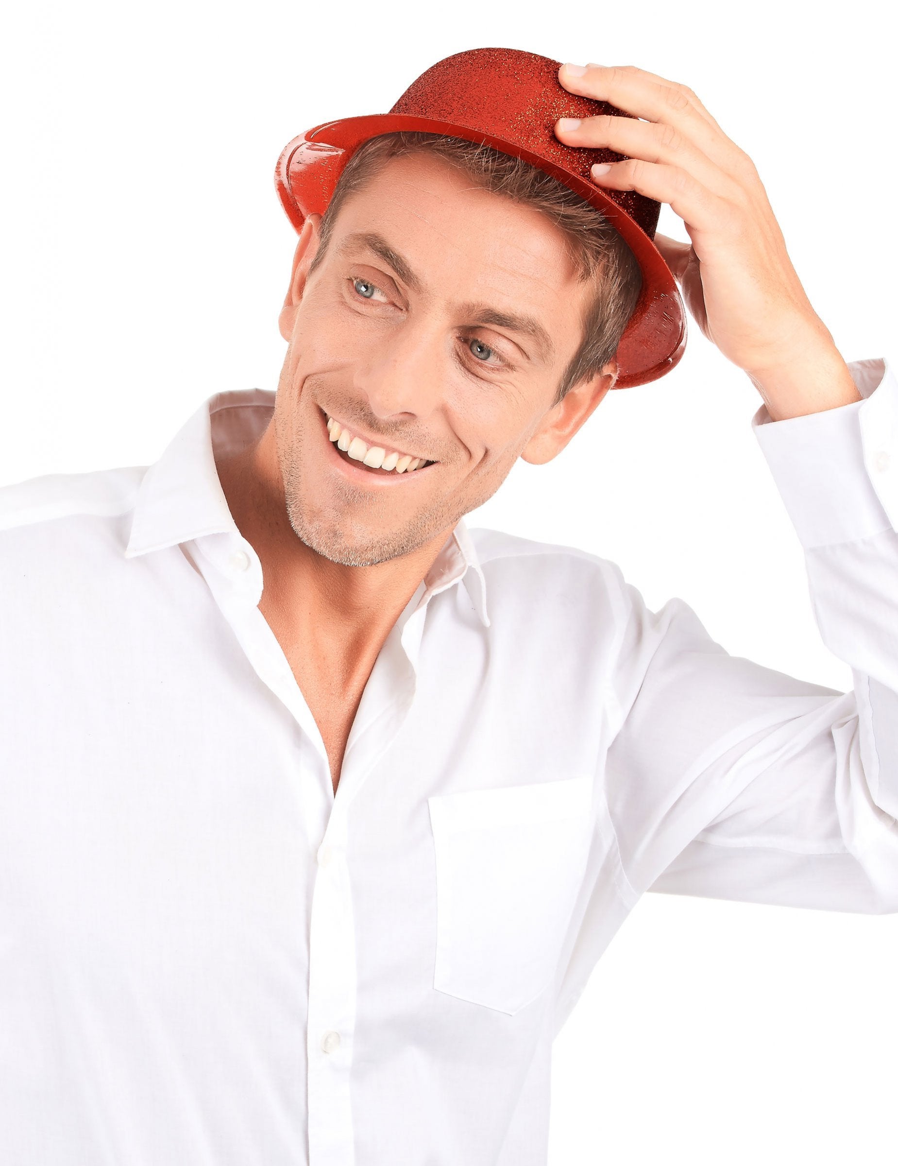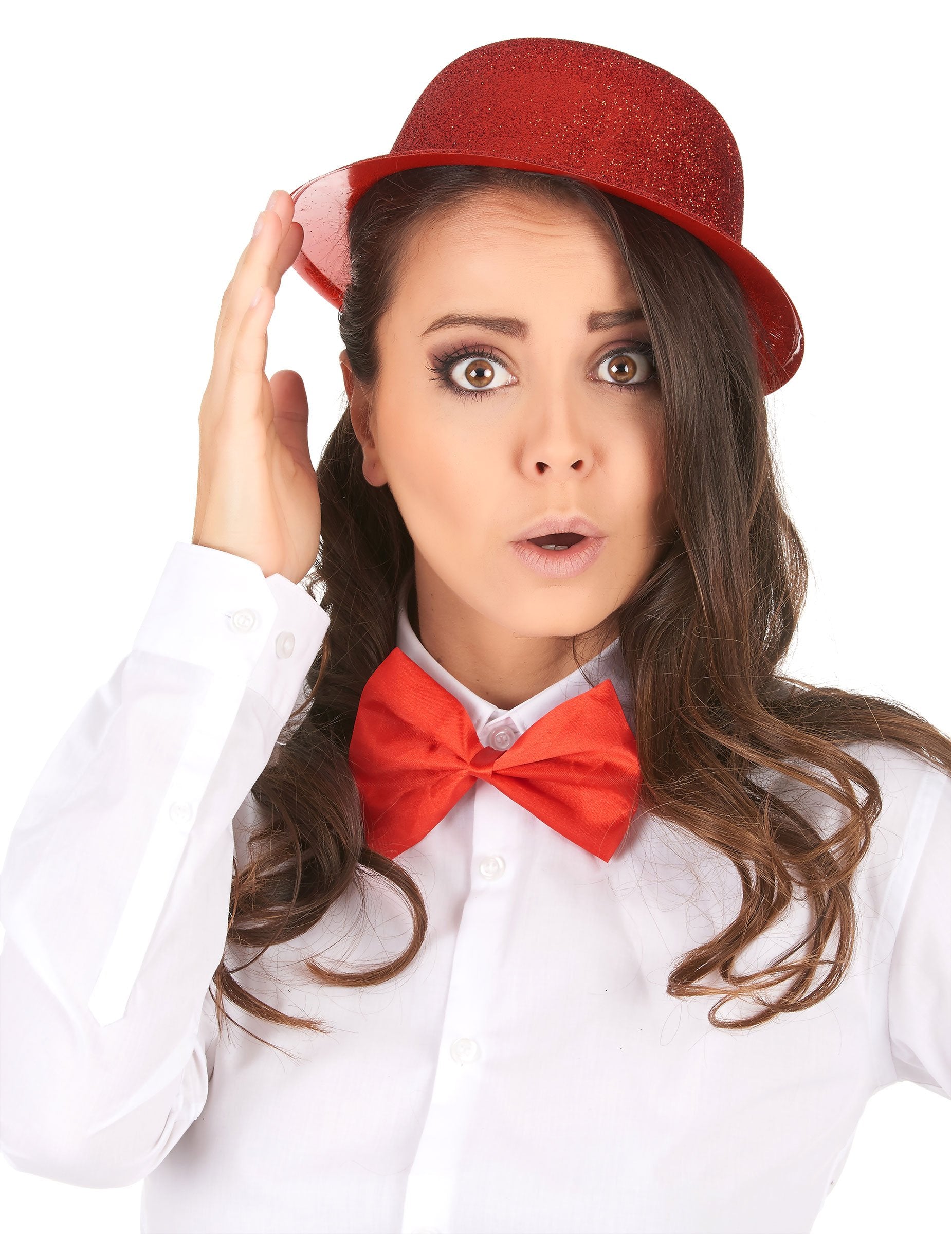 Ezt a dinnye kalapot vörös csillogás borítja. Finom és rugalmas műanyagból készül. Körülbelül 57 cm -hez közel van egy fejjel. Ez a kiegészítő tökéletes lesz, hogy elegáns és kis őrület érintést hozzon ruhájához egy álcázott esemény során!
