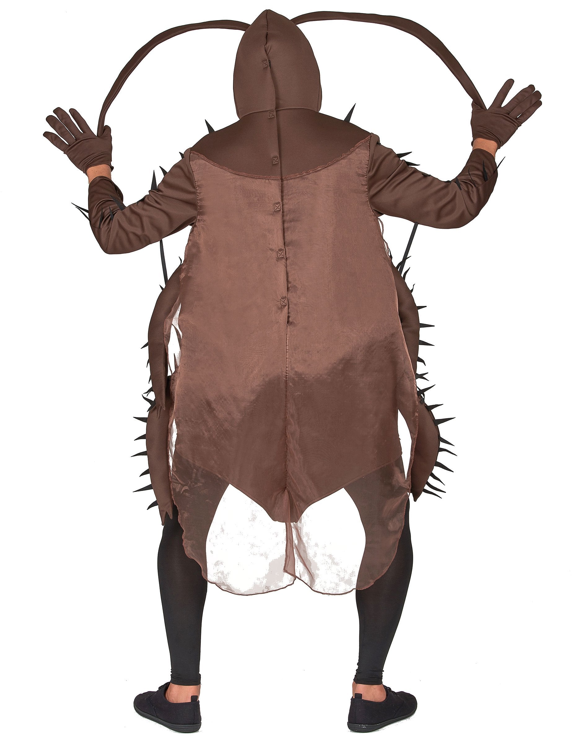 Ez a felnőtt csótány jelmez egy kombinációval ellátott kombináció. A kombináció elsősorban a barna habban van, amelyet a tüll az elülső oldalán a ragyogáshoz és egy pár szárnyat hátulról végez. A hüvelyek és a 4 lábak egyeznek, mindegyike a két fém megerősítő antennahoz hasonlóan. A hátsó karcolási csík lehetővé teszi, hogy könnyen felvegye a jelmezt. A kesztyűk, a rövid és a barna megfelelnek a ruhának. Ez elegendő ahhoz, hogy undorítóvá és vidám legyen egy álcázott esemény során!