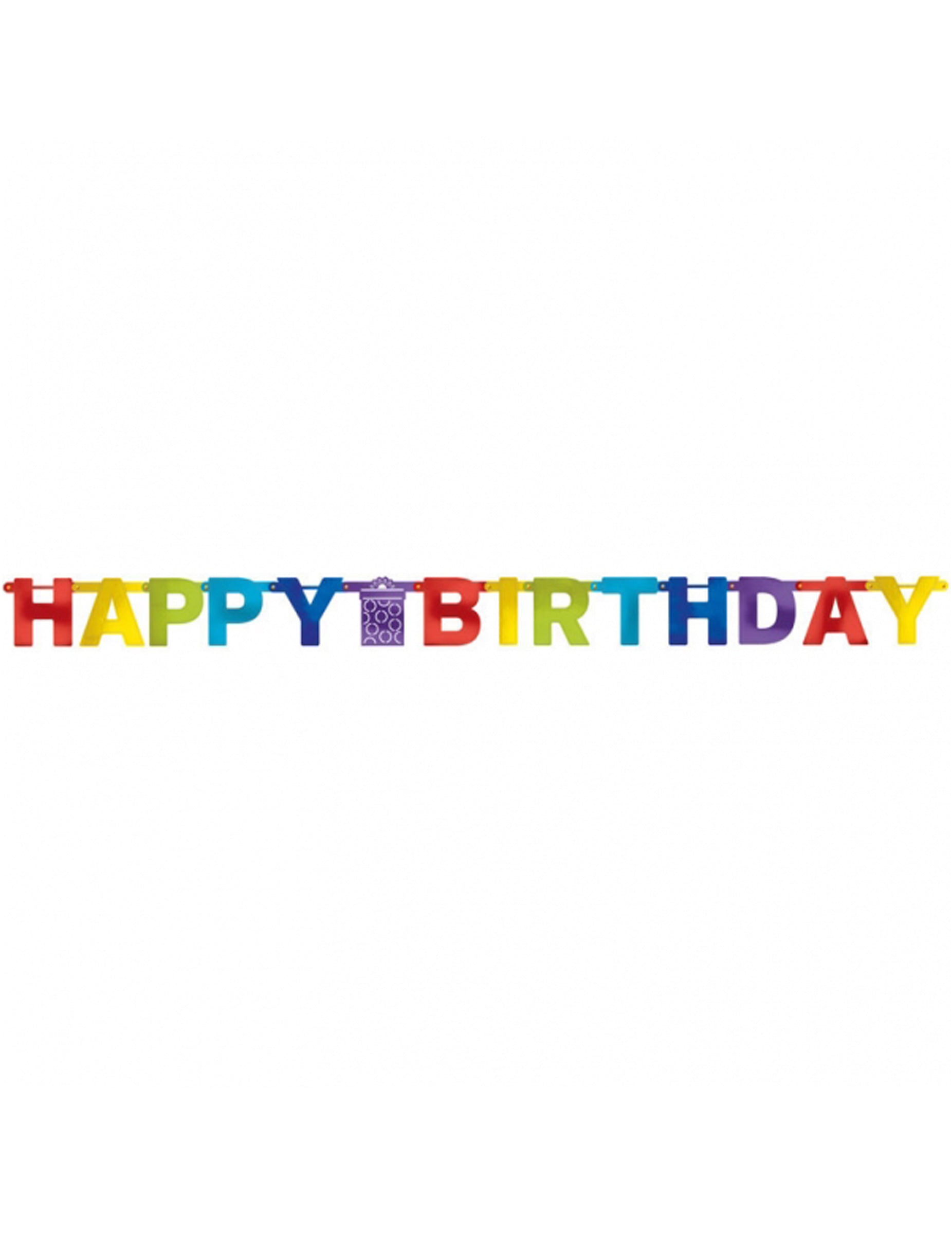 Ez a fém kartonban található születésnapi koszorú körülbelül 213 cm. Olyan csíkból áll, amelyen 16 cm -es többszínű matrica van, amelyek a "Boldog születésnapot" üzenetet képviselik. Ajándékmatrica is van jelen. A mindkét végén lévő karakterláncból lehetővé teszi a dekoráció könnyen felfüggesztését. Születésnapi dekorációja egy színes témáról teljes lesz ezzel a szórakoztató és fényes koszorúval!
