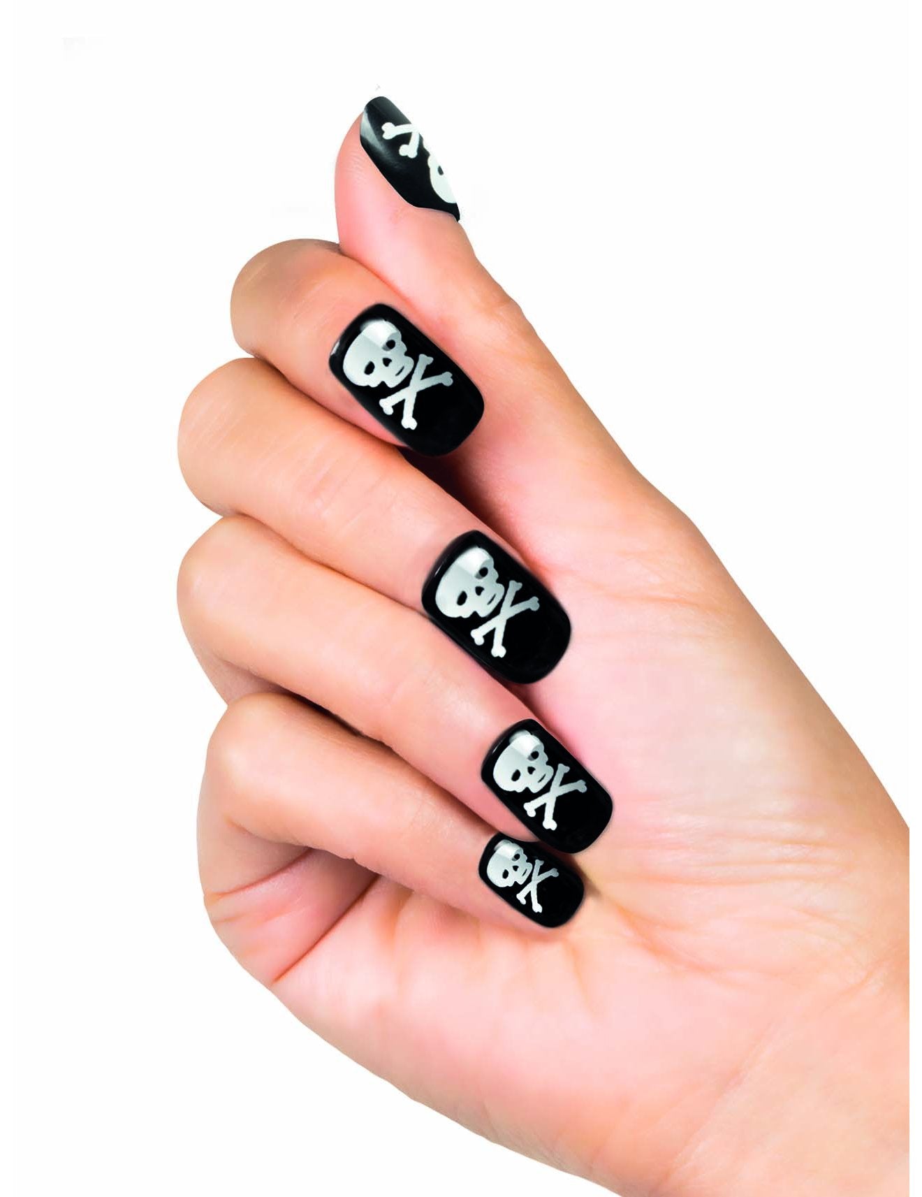Ez a kalóz hamis körmök készlet 24 hamis körömből és 24 dupla oldalú ragasztóból áll. A körmök fekete, fehér koponyával, a kalózkodás szimbóluma. A ragasztók lehetővé teszik a hamis körmök egyszerű rögzítését, és jó támogatást biztosítanak. Tökéletesítik a kalóz nőedet a tökéletességre!