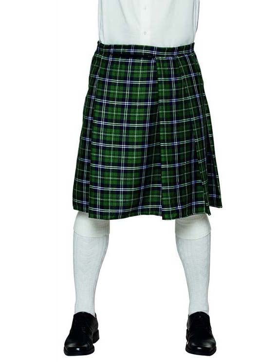 Ez a zöld skót kilt férfiaknak szól (magas, fehér zokni és cipő nem tartalmazza). Ezt a skót Kiit -et zöld és fehérvel kockás. A méretű fekete karcolás csíkja van. A szoknya körülbelül 57 cm hosszú. Ez a Kilt tökéletes az ecadese jelmez kitöltéséhez álcázott estéken vagy karneválhoz.