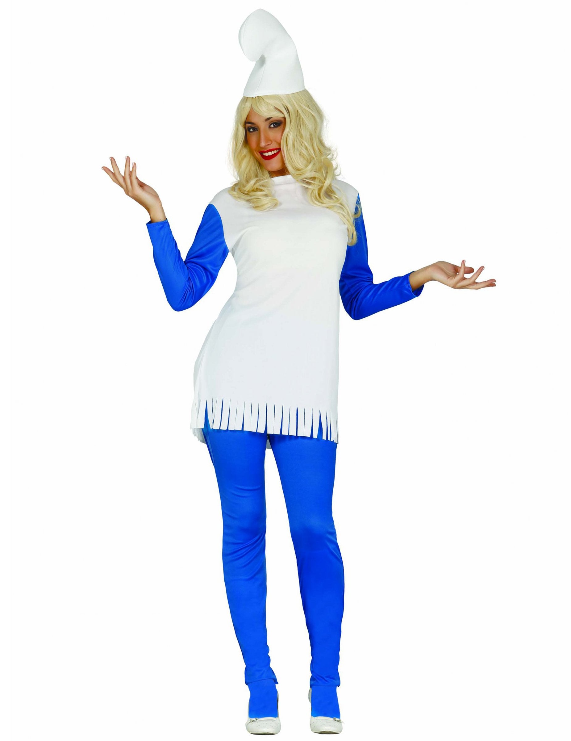 Ez a kék törpe jelmez a nők számára egy tunikából, nadrágból és kalapból áll (cipő és zokni nem tartalmazza). A Fehér Tunika hosszú, kékes kék és alján rojtos. A szöveti csíkokat az oldalán tervezik, és lehetővé teszi, hogy a ruhát jobb hatás érdekében meghajolja. A kék nadrág rugalmas derékkal van, és a test közelében van viselve. A hab kalap fehér, és emlékeztet a híres kék kis srácok emelőjére! Ennek a kék törpe jelmeznek egy álcázott este vagy színes karnevál idején lesz hatása!