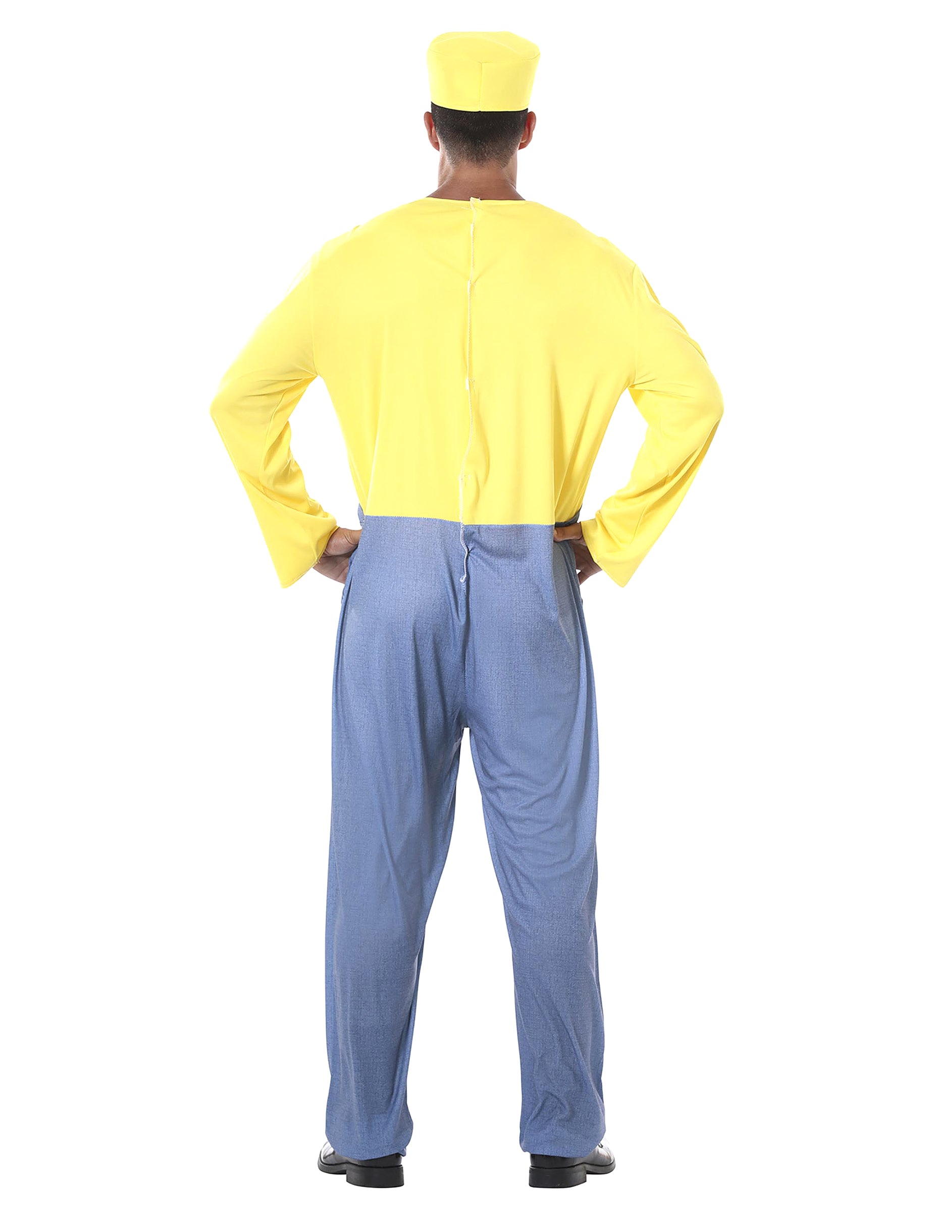 Ez a felnőttek számára ez a kicsi sárga lény, amely kombinációból és sapkából áll (kesztyű, válogatás, szemüveg és cipő nem tartalmazza). A kombináció egy farmer kék színű, sárga tetején varrott. A hátulján lévő karcolások lehetővé teszik, hogy bezárja. Az ujjak hosszúak. Az overál tetejét két gomb és egy zseb díszíti. A hát felső része nagyon sárga. A sapka teljesen sárga és habból készül a maximális kényelem érdekében. Ez az álruhás tökéletes lesz arra, hogy átalakítsa Önt egy híres kis sárga lényré a karneválban vagy egy álruhás partira!