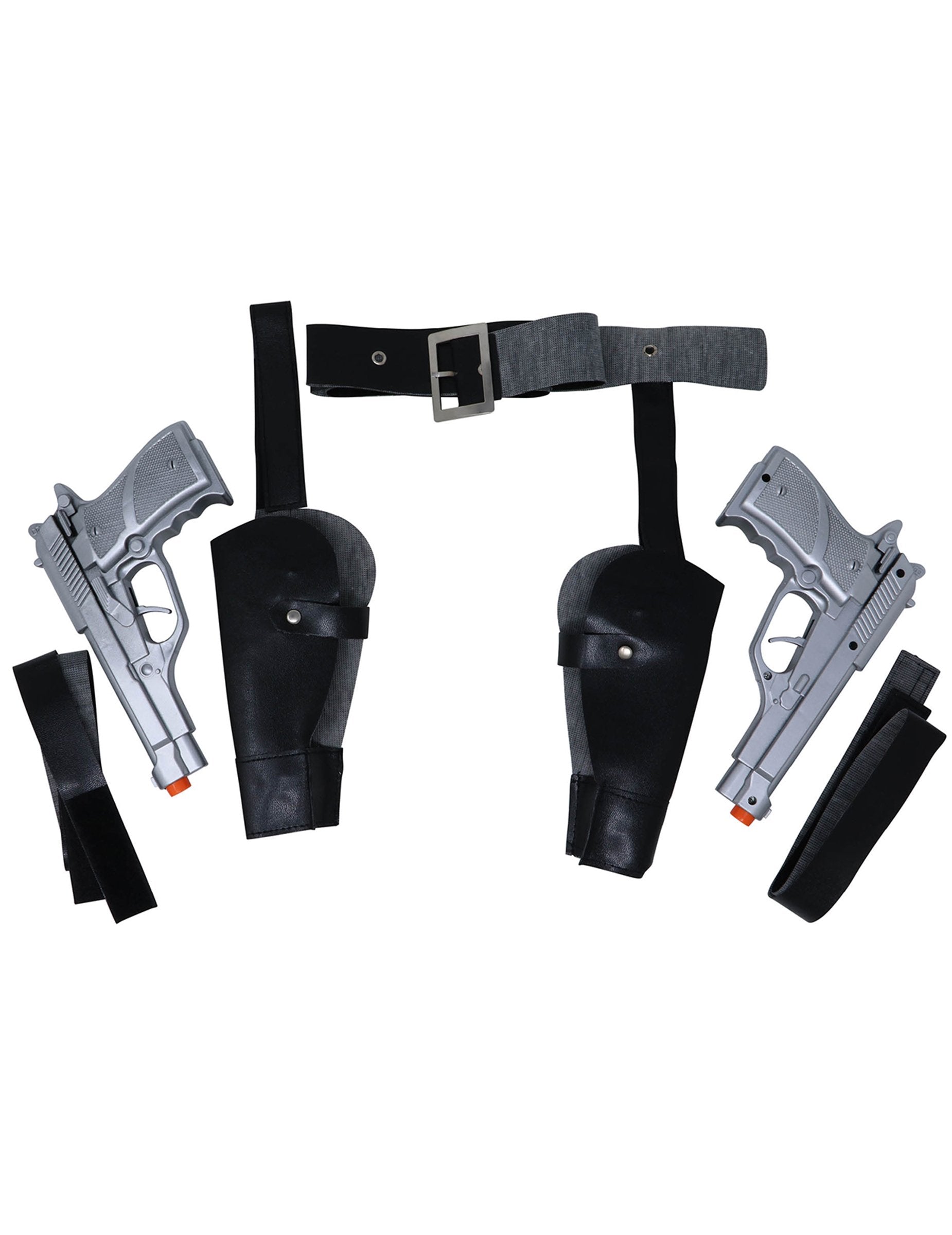 Ez a tétel egy állítható övből, két pisztolyból áll a cserélhető esetekben és két hevederből, amelyeket a combokhoz rögzíthet, hogy igazabb, mint az élethatás. Ez tökéletes lesz a markolat álruhájának tökéletesítéséhez!