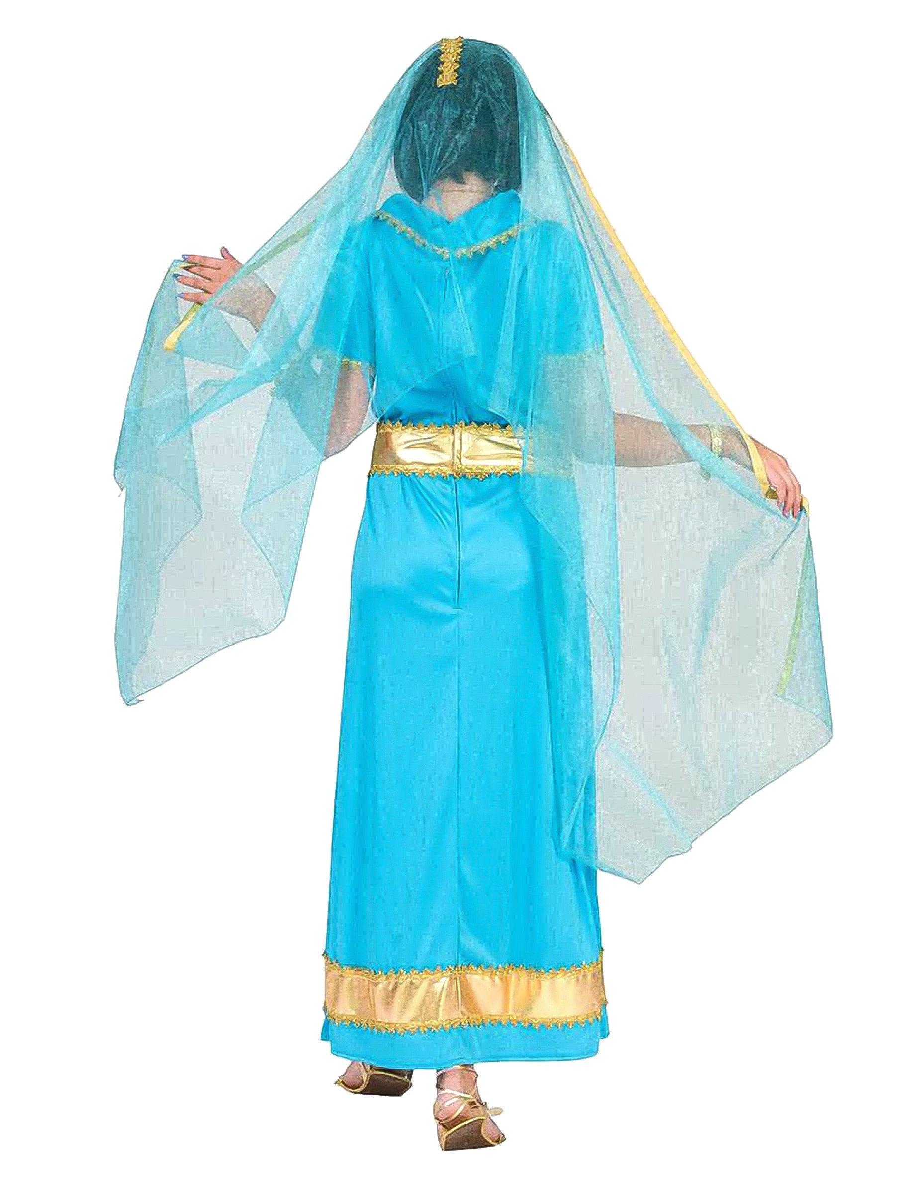 Ez a kék bollywoodi hercegnő álcázza a nők számára egy hosszú ruhából, övből és fátyolból (slágerek és ékszerek nem tartalmazzák). A hosszú kék ruha rövid ujjú és fordított nyakú. Egy nagy csillogó aranyszalag díszíti a ruha alját. Arany kötőanyagok vannak jelen a sáv szélén, az ujjak végén és a környező területen. A ruha cipzárral bezárul a hátulján. A csillogó arany öv arany szegéllyel rendelkezik, és karcolással bezáródik. Az átlátszó kék fátyol kitölti a jelmezt. A szélén egy hornyolt aranycsíkkal és egy arany szegéllyel díszítik. A homlokán egy csillogó arany részletet varrnak az ékszer. Ez az álruhás ideális lesz az esti hercegnő vagy a karnevál számára!