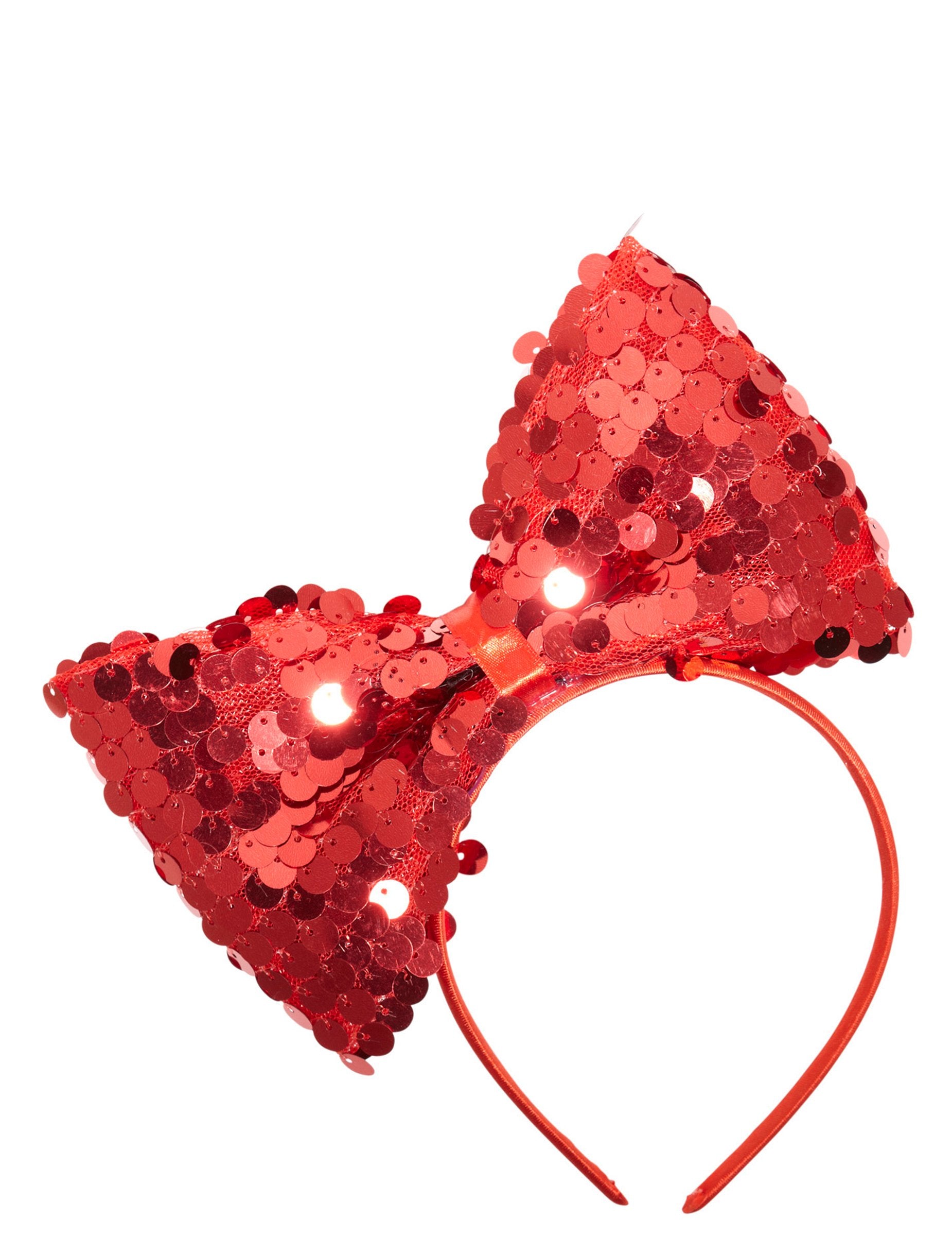 Ezt a felnőtt fejpántot egy nagy, vörös csomó hajtja be flitterrel. A fejpánt műanyag, piros anyaggal borítva. A csomó vörös flitterekkel borított szövetből készül. Körülbelül 19 cm széles és körülbelül 12 cm a legmagasabb. Ez a fejpánt ideális lesz egy "shinestone + csillogó" estére vagy az újévre! Copyright Widmann SRL