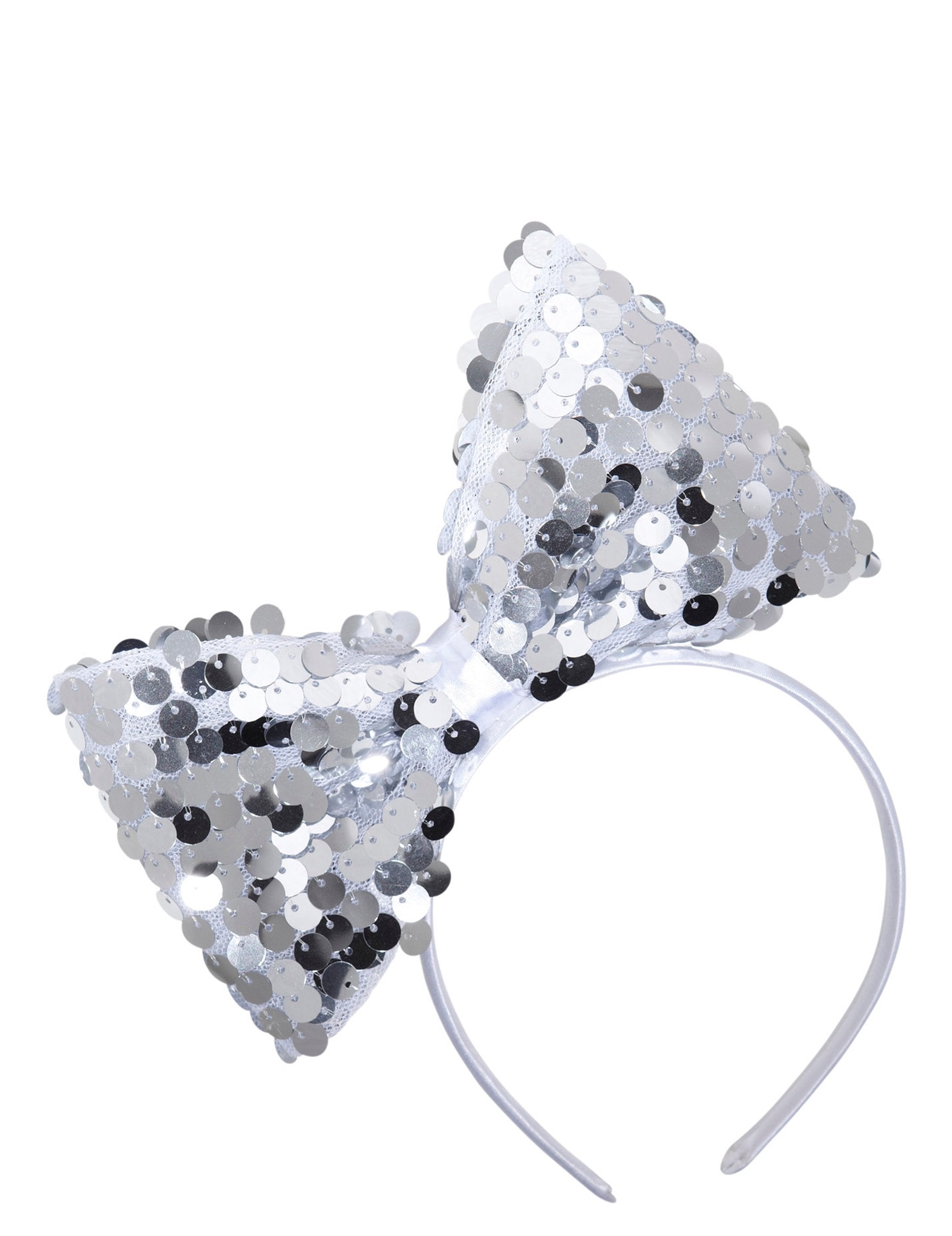Ez fejpánt felnőttek számára egy nagy Ezüst flitteres masni.
