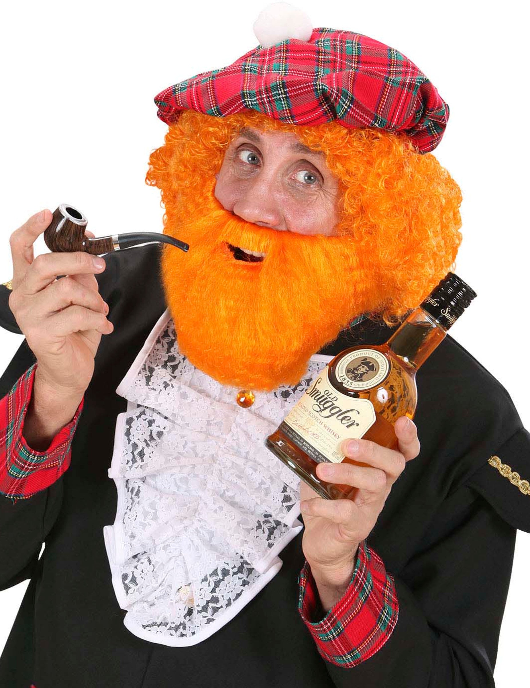 A skót bajuszos szakáll felnőtteknek szól. Narancssárga szintetikus szőrszálakból készül (csak a bajuszt tartalmazó szakáll van). Ez a szakáll körülbelül 17 cm hosszú, és rugalmassággal viselkedik. Tökéletes lesz a skót jelmez befejezéséhez. Copyright Widmann SRL