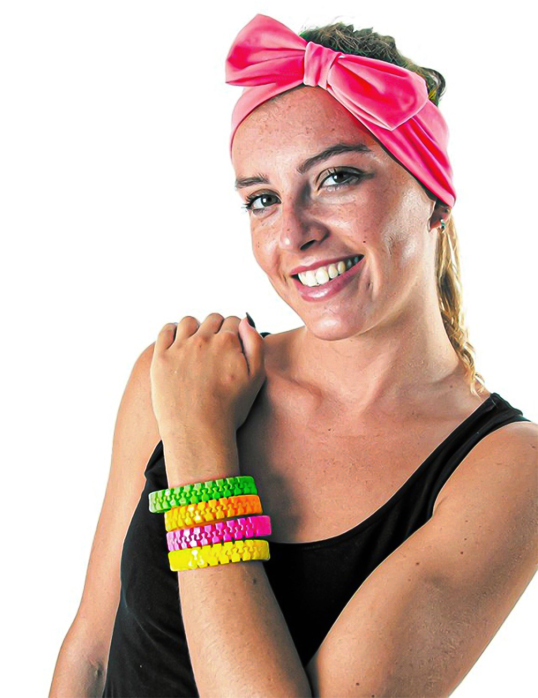 Ez a fluoreszkáló rózsaszín cipzáras karkötő műanyag. A karkötőt bezárja egy cipzár és klipek illúzióját. 22 cm hosszú. Ez a karkötő tökéletes lesz egy estére a fluoreszcens témán vagy a 80 -as és 90 -es évekhez.