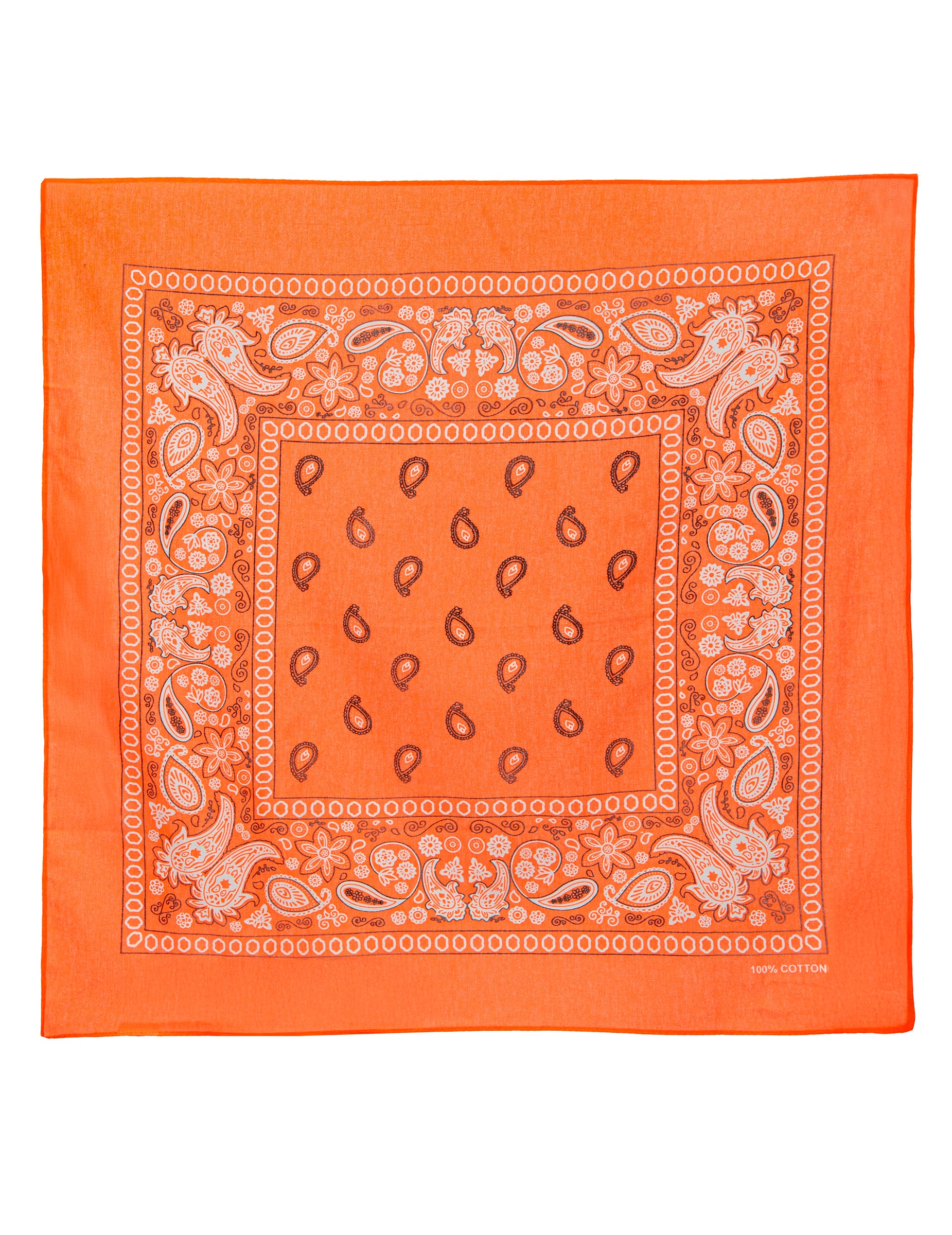 Fluo narancssárga bandana felnőttek számára. Hogy viseljen a nyakad körül, a fejeden, az övön ... csináld, ahogy csak akarod! Ez a retro stílusú bandana tökéletes lesz az esti órákra a 90 -es évek témájára!