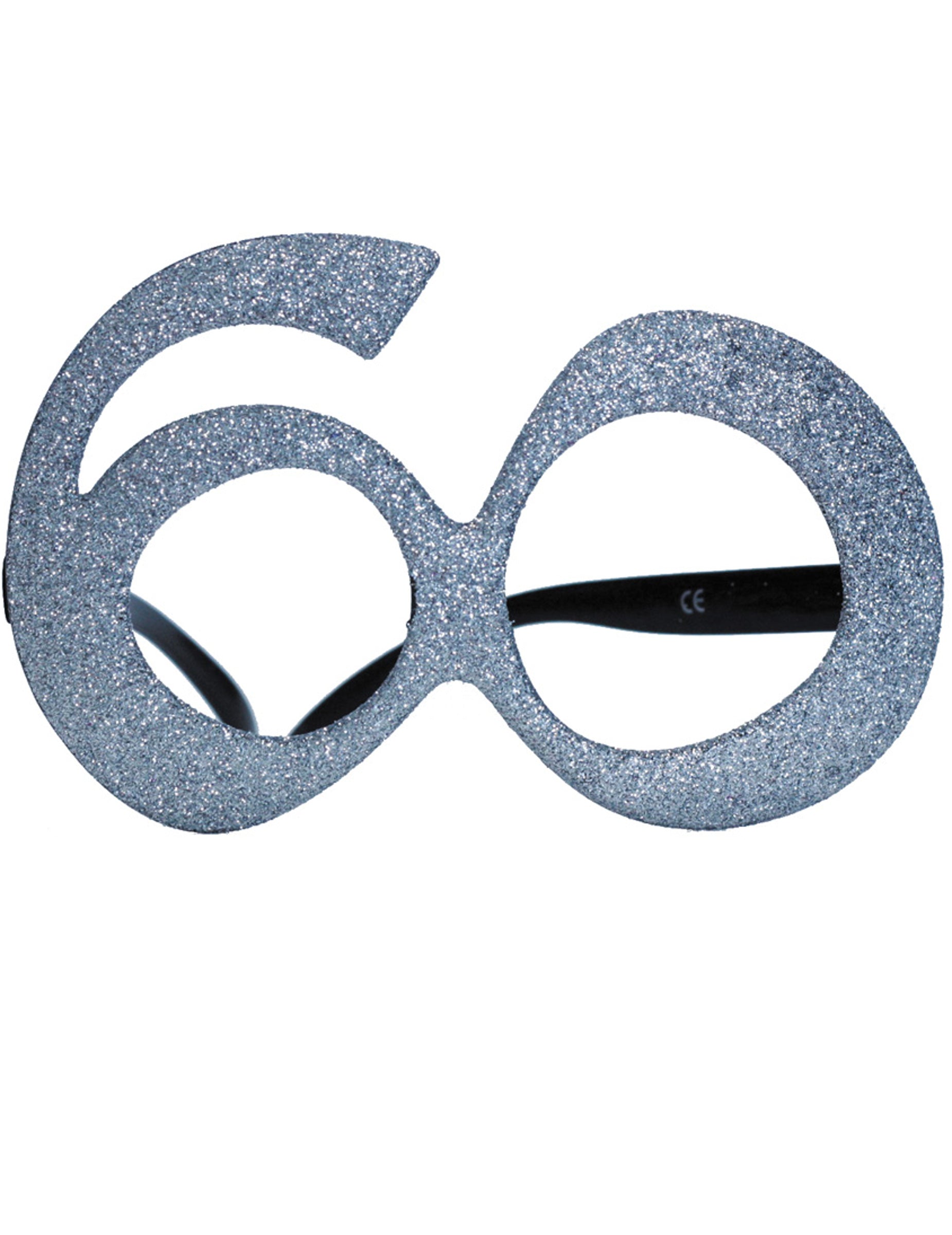 Ez a műanyag szemüveg párja a 60. ábrát ábrázolja, a 60 éves korában. A keretet ezüst flitterekkel borítják. A szemüveg körülbelül 14 cm széles. Nincs szemüvegük. Az ágak fekete és körülbelül 13,5 cm hosszúak. Ez a kiegészítő elengedhetetlen lesz a születésnapi partijához 60. születésnapjára!