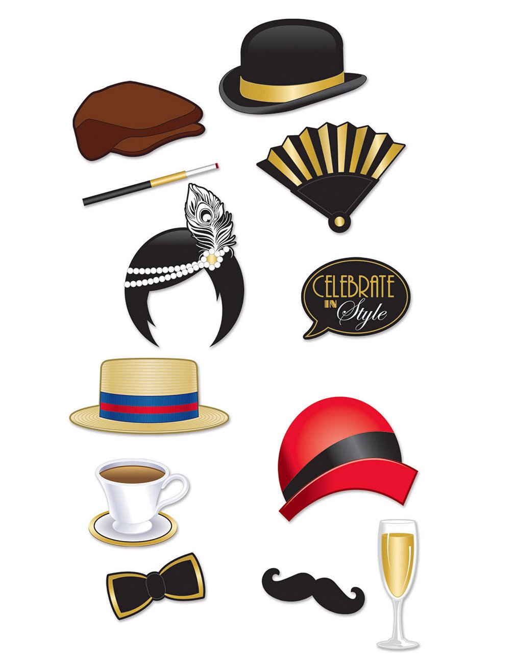 Ez a Photobooth készlet 12 tartozékból áll az 1920 -as évek témájáról. Ez a tétel 16-28 cm -es darabokat tartalmaz: egy bajusz, egy paróka zászlót, három kalapot, egy csésze kávét, egy csésze pezsgőt, egy cigaretta ajtót, egy tartományt, egy Gavroche sapkát, egy csokornyakkendőt és egy buborékot. Készítsen egy szórakoztató és eredeti animációt, köszönhetően ennek a Photobooth -készletnek a téma estéi alatt!