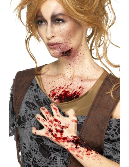 Ez a Halloween smink felnőtteknek szól. Ez a vér kéregét képviseli. Még több realizmus érdekében hamis vért adhat hozzá. Tökéletes lesz a Halloween jelmezén kívül!