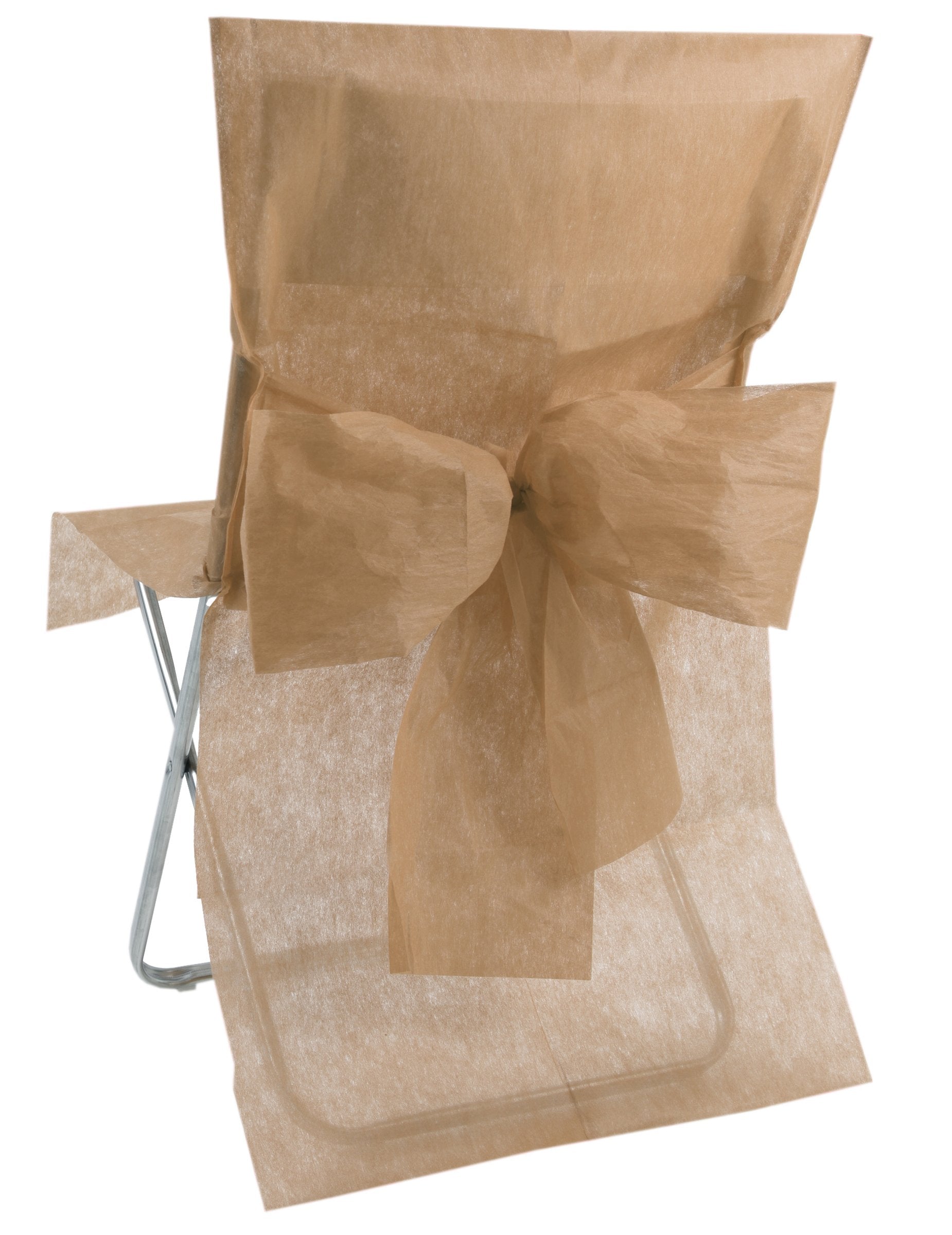 10 darabos csomagban kínált székhuzatok ezek, amelyek azonnal átalakítják a rendezvényre szánt bútoraidat. Taupe színű, vlies anyagból készültek, méretük 50 x 95 cm. Ez a puha tapintású textil elegánsan fedi be a szabványos ülőalkalmatosságokat. Az oldalsó szalagoknak köszönhetően minden háttámlánál szép díszmasnit köthetsz. Ez a taupe árnyalat tökéletesen illik egy természetes stílusú esküvőiteremdekorációhoz. Emeld ki székeidet, hogy egy egyedi esküvőiszertartás hangulatát teremtsd meg.