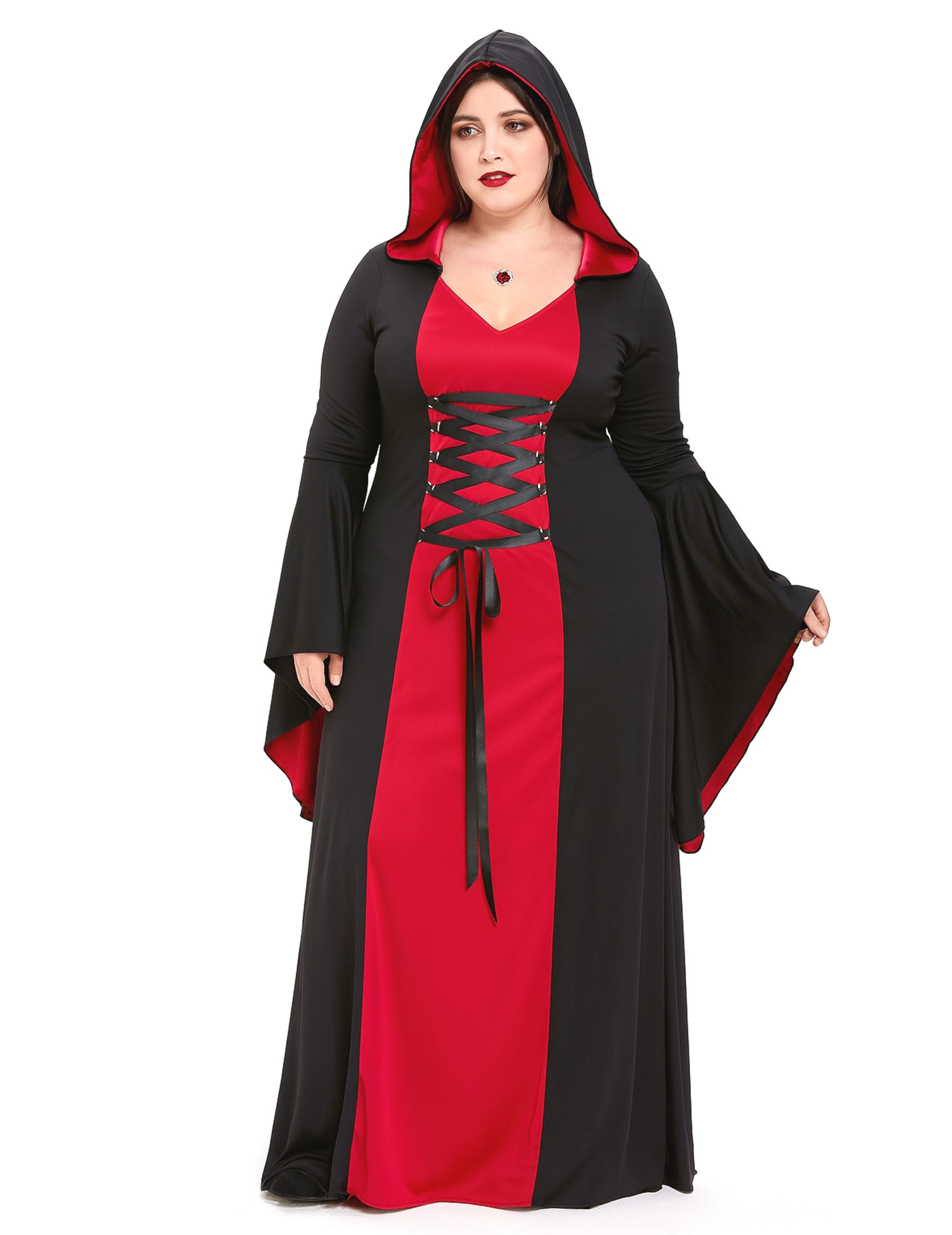 Ez a középkori jelmez a nők számára kapucnis ruhából áll. Van egy nagyon galambizáló, merülő nyakkivágó és csipkék, amelyeket a mellkas alá köthet. Az ujjai szélesek és fellendülnek, mint az integrált motorháztető. Adjon meg egy vörös és fekete pillantást az 5. századból egyenesen! Ez a nők számára ez a középkori jelmez ideális Halloween vagy középkori fesztivál számára.