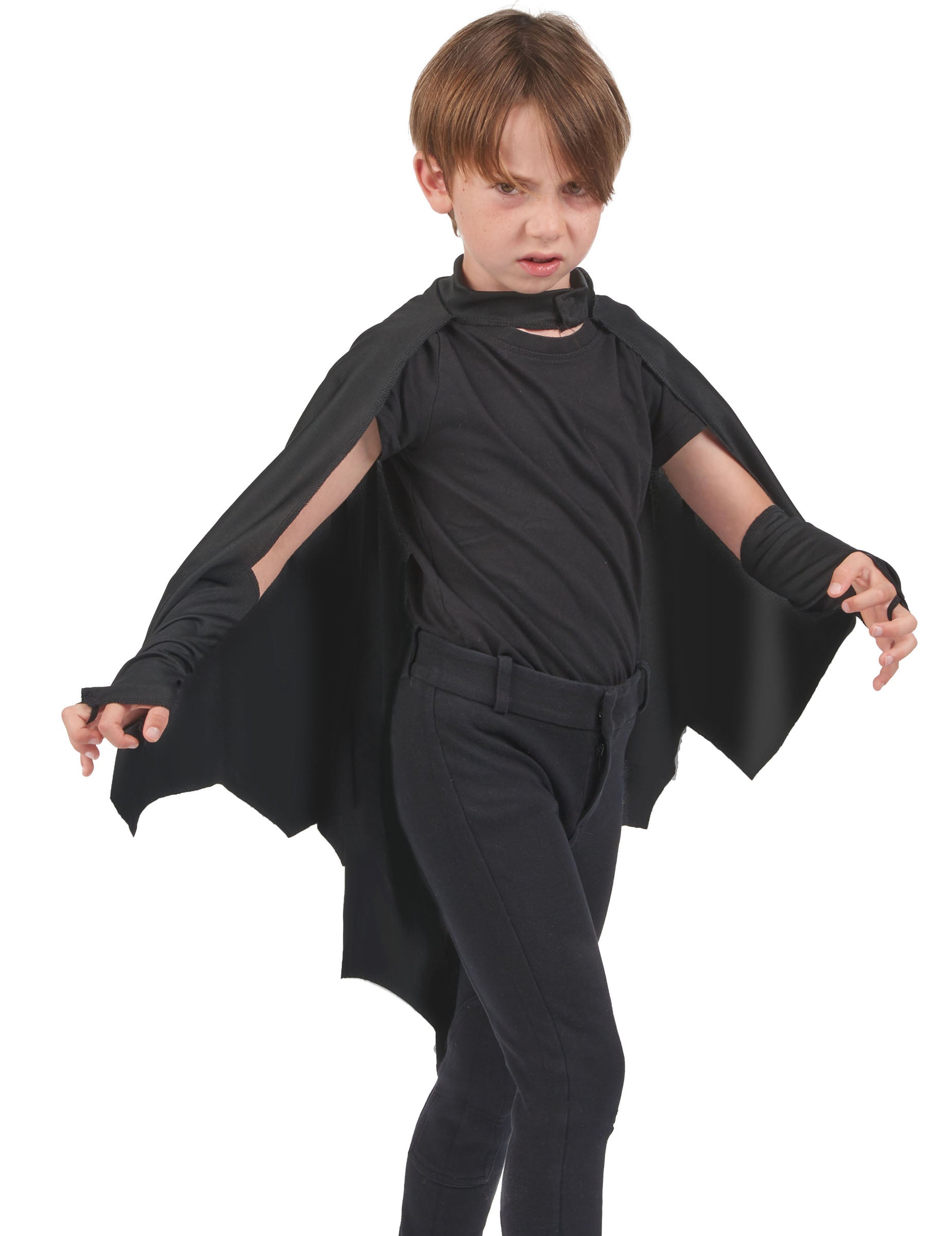 Ennek a fekete vámpír -köpenynek denevér szárnyak alakja van, a köpenybe beépített mandzsetták lehetővé teszik, hogy a köpenyt a csuklóhoz rögzítse. Ez az imádnivaló denevér köpeny, átalakítja gyermekét egy kis vámpírré Halloween számára.