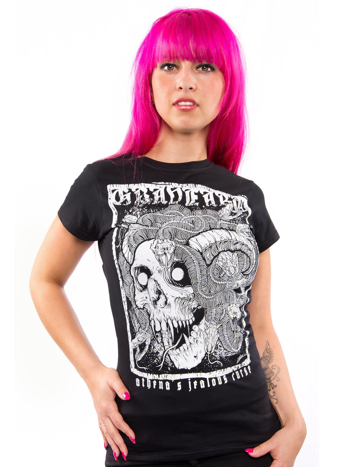 Ez a fekete koponya mintás női felső ideális egy lázadó és titokzatos megjelenéshez. A szarvakat és kígyókat ábrázoló nagy fehér koponya motívummal díszítve rockos és sötét hangulatot kölcsönöz az öltözékednek. Fekete-fehér kontrasztja szemet gyönyörködtető, és tökéletesen kiemeli a stílusodat. Kényelmes és könnyen párosítható sötét nadrággal vagy rövid szoknyával, ez a felső gyorsan a ruhatárad kulcsfontosságú darabjává válik. Tökéletes egy Halloween-bulira!