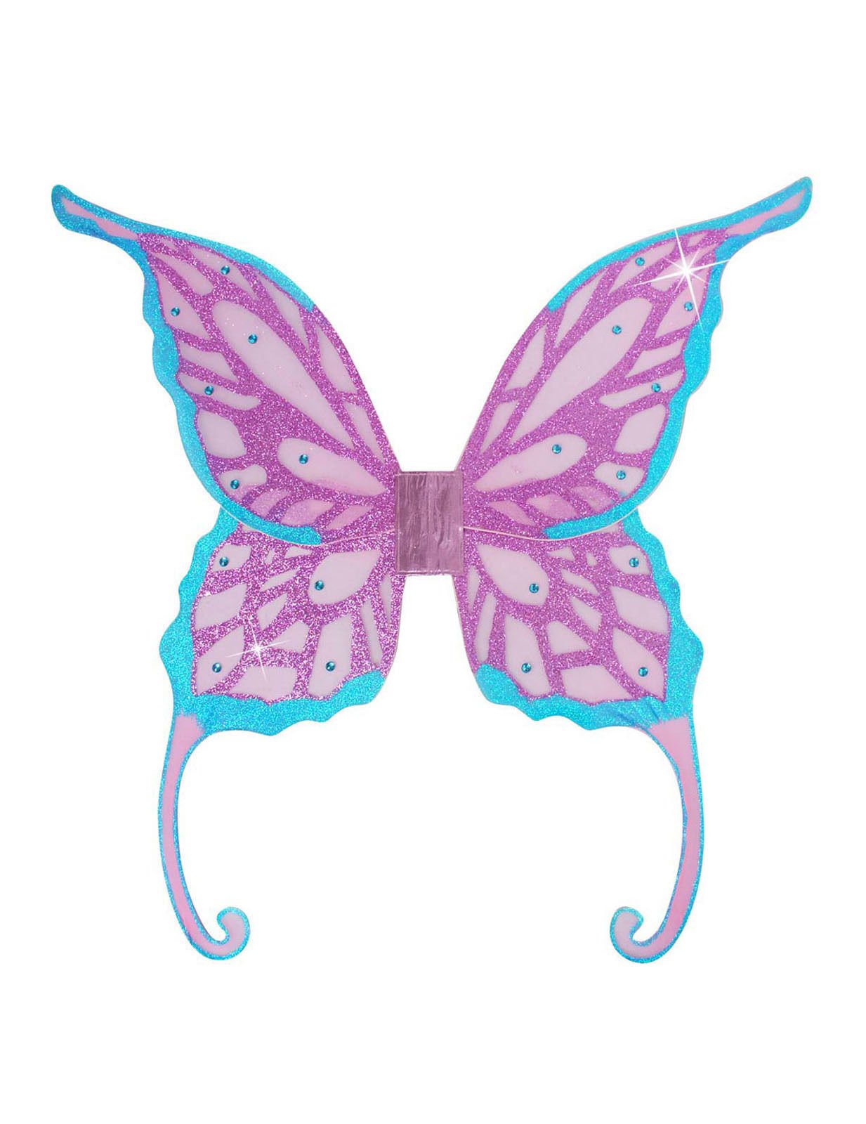 Ezek a bájos tündérszárnyak hasonlítanak a finom pillangó szárnyakra. 85 x 88 cm -t mérnek. Lila és türkiz színű, ezeket a szárnyakat tündérporral meghintik, ami fényessé teszi őket. Két átlátszó baduliéres lehetővé teszi a szárnyak hátulján történő rögzítését. Elf, tündér vagy pillangó jelmez esetén ez a tartozék varázslatos lesz.