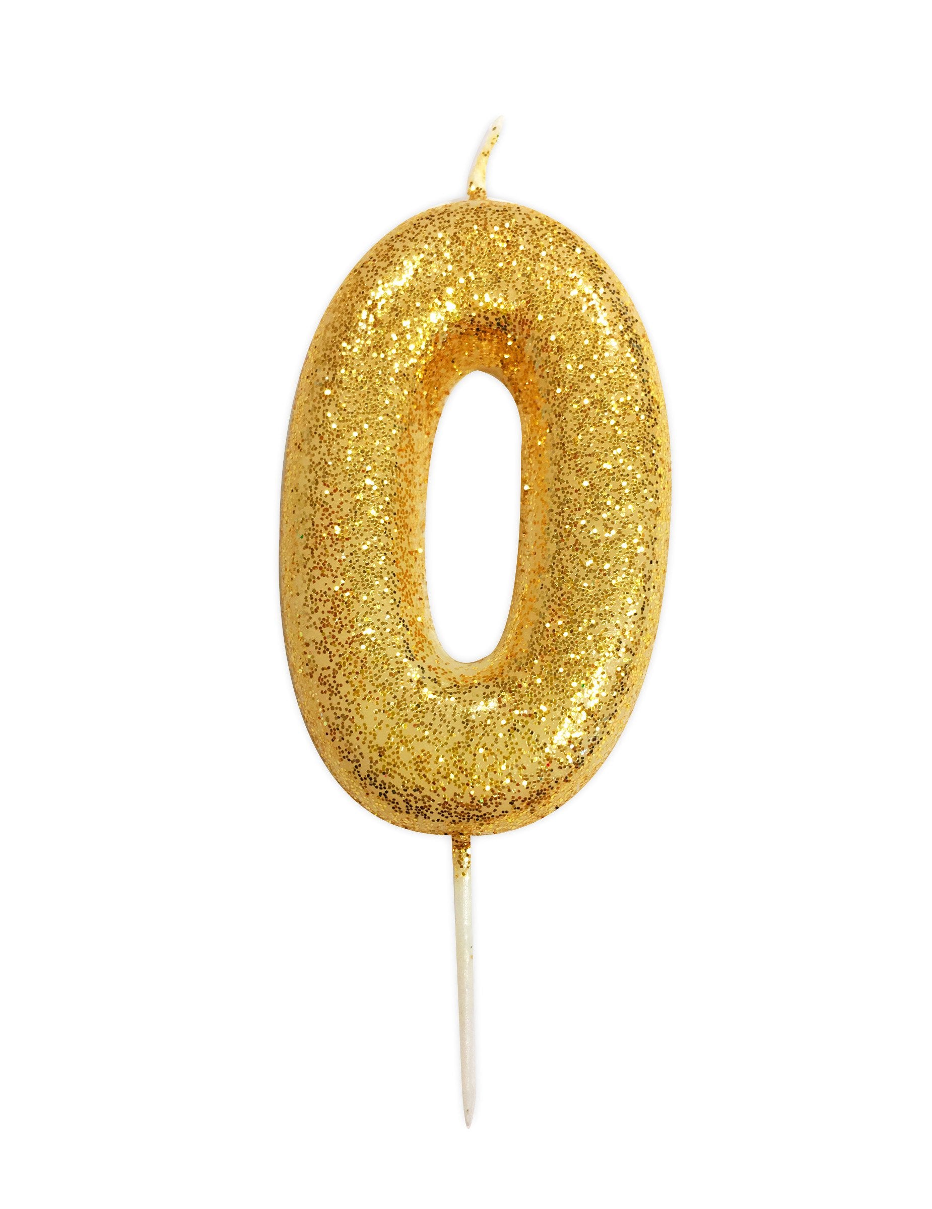 Arany csillámporos 0-s és 9-es számú gyertya cm