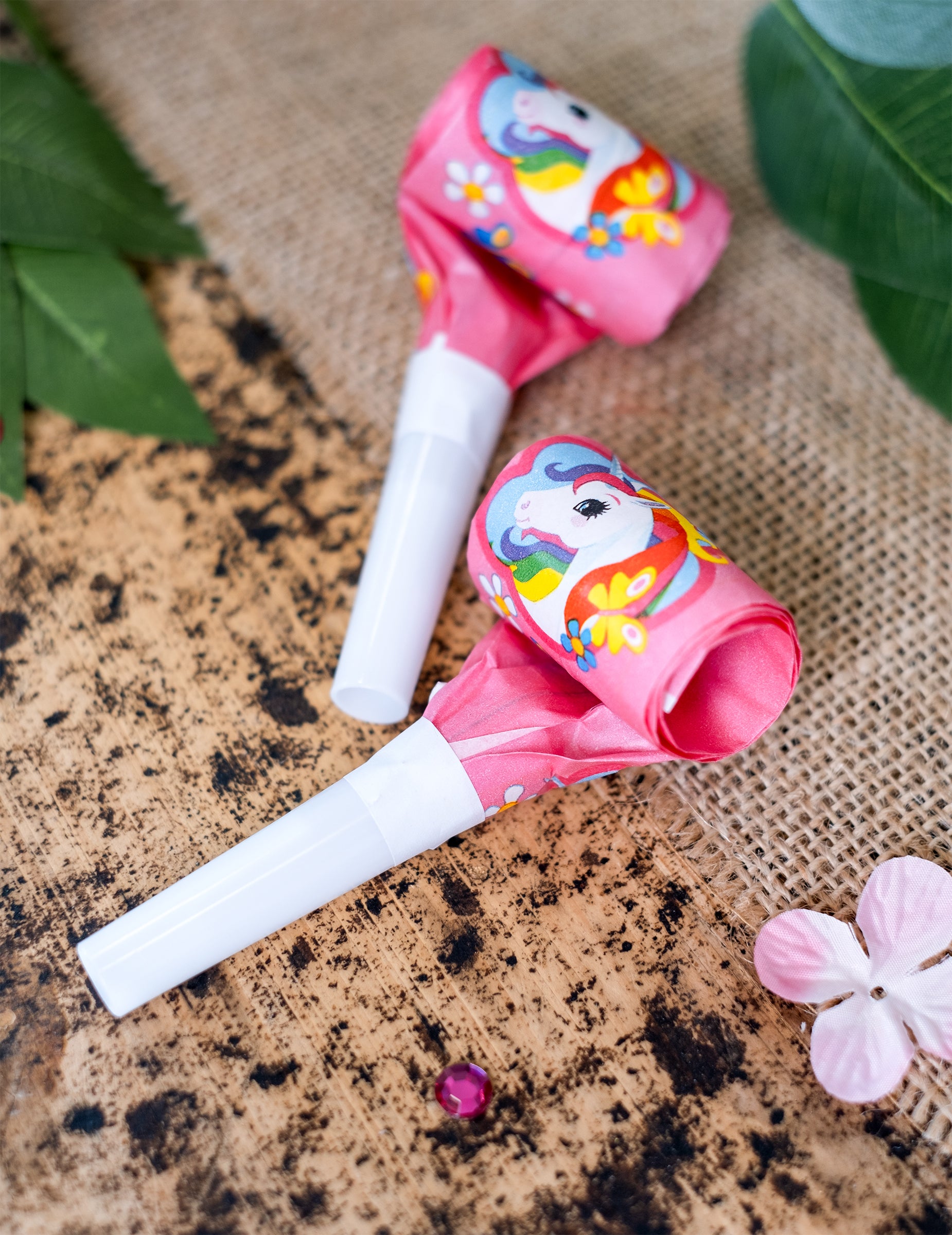 Ezeket a sans-gênes-eket nagyon 8-ban adják el. Rózsaszín papírban vannak, ezer színű egyszarvú nyomtatva. A hegy egy fehér műanyag síp. A szórakozáshoz és a maximális zaj eléréséhez fújjon a sípot, hogy kibontsa a tekercset! Gyermeke örömmel fog zajt adni a barátaival, egy születésnapi nap alkalmával az egyszarvúak földjén!