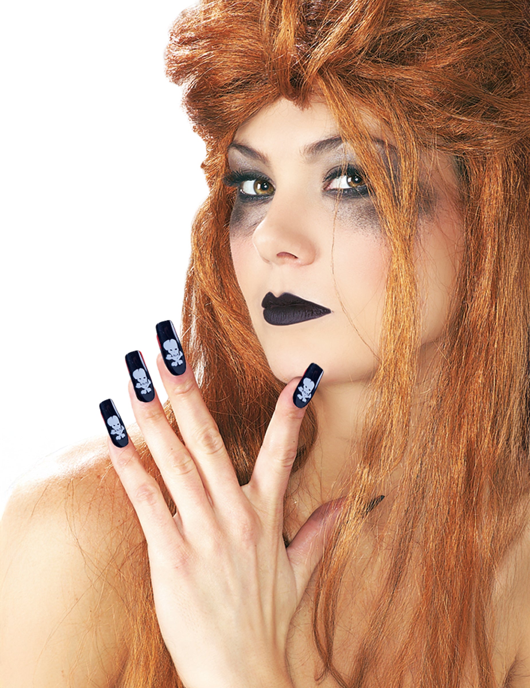 A kiegészítők tartalmazzák: 1 fekete rúzs, 10 hamis köröm koponya