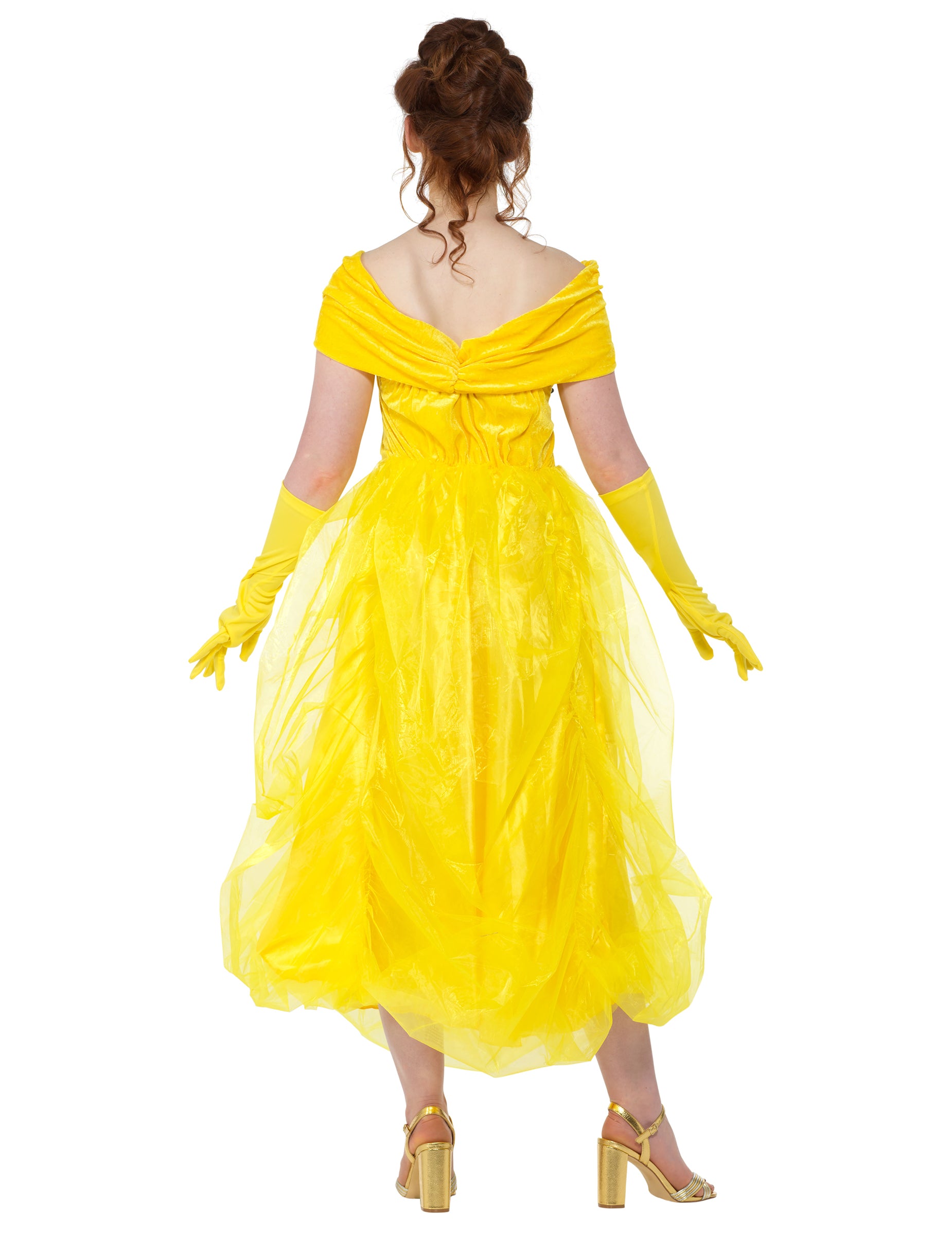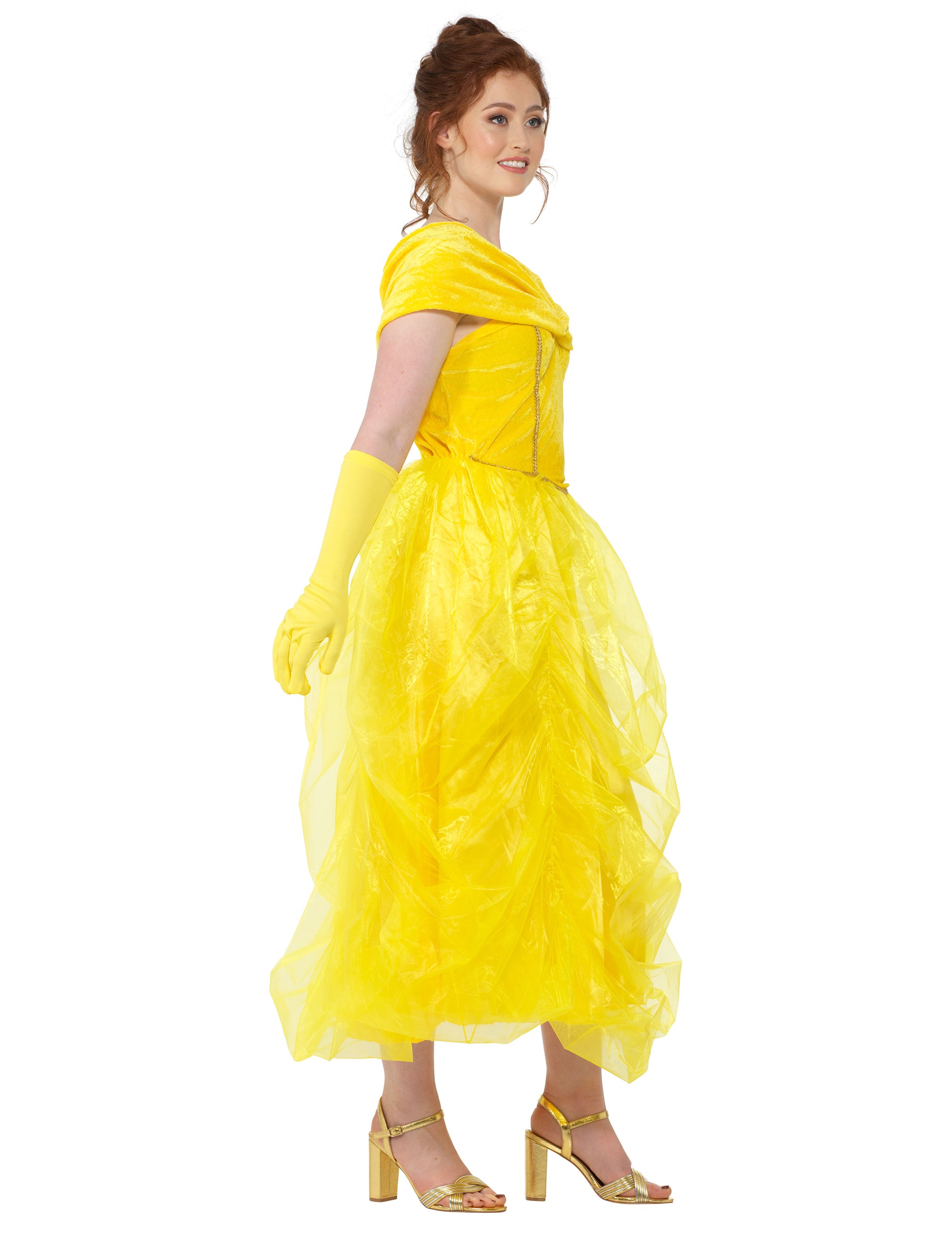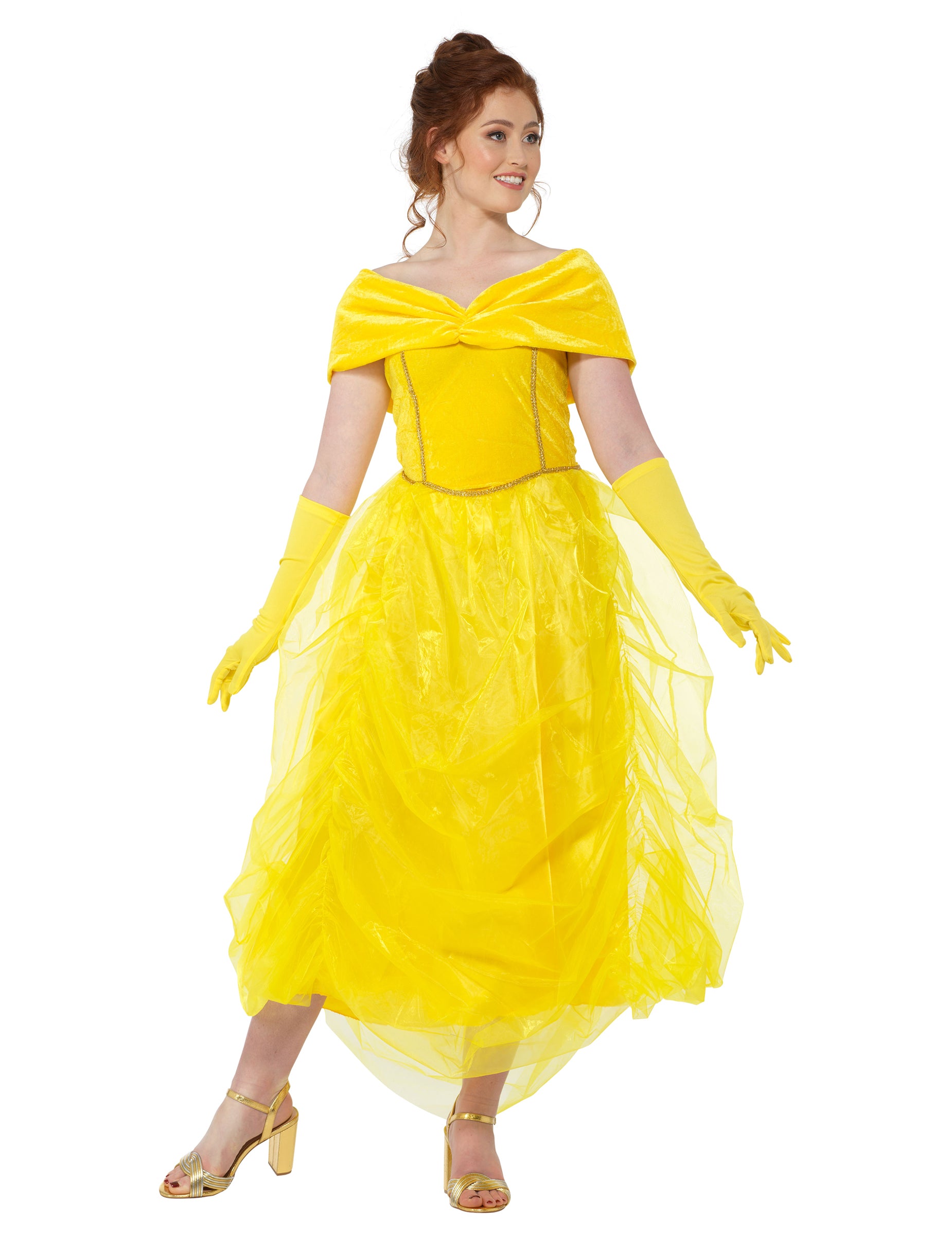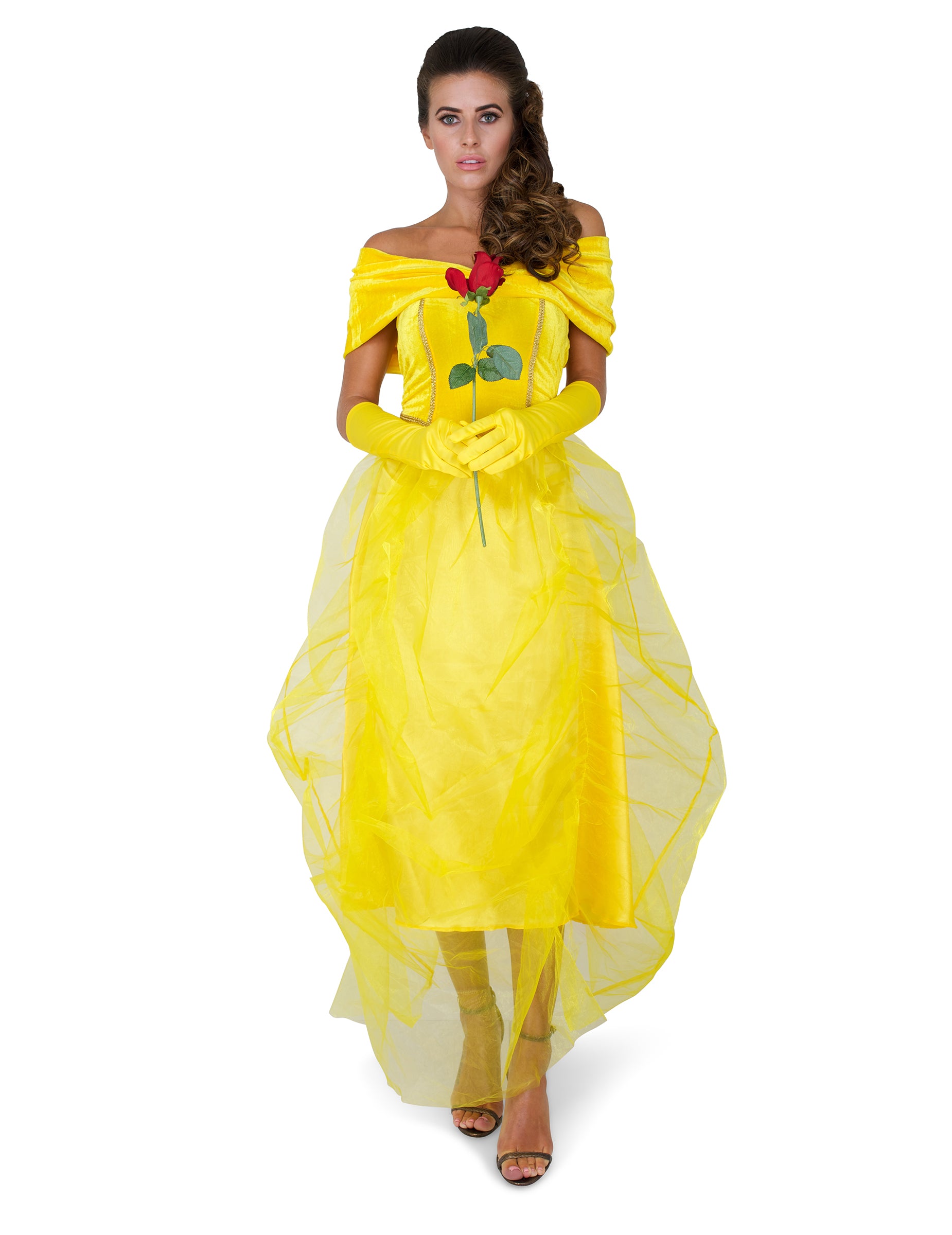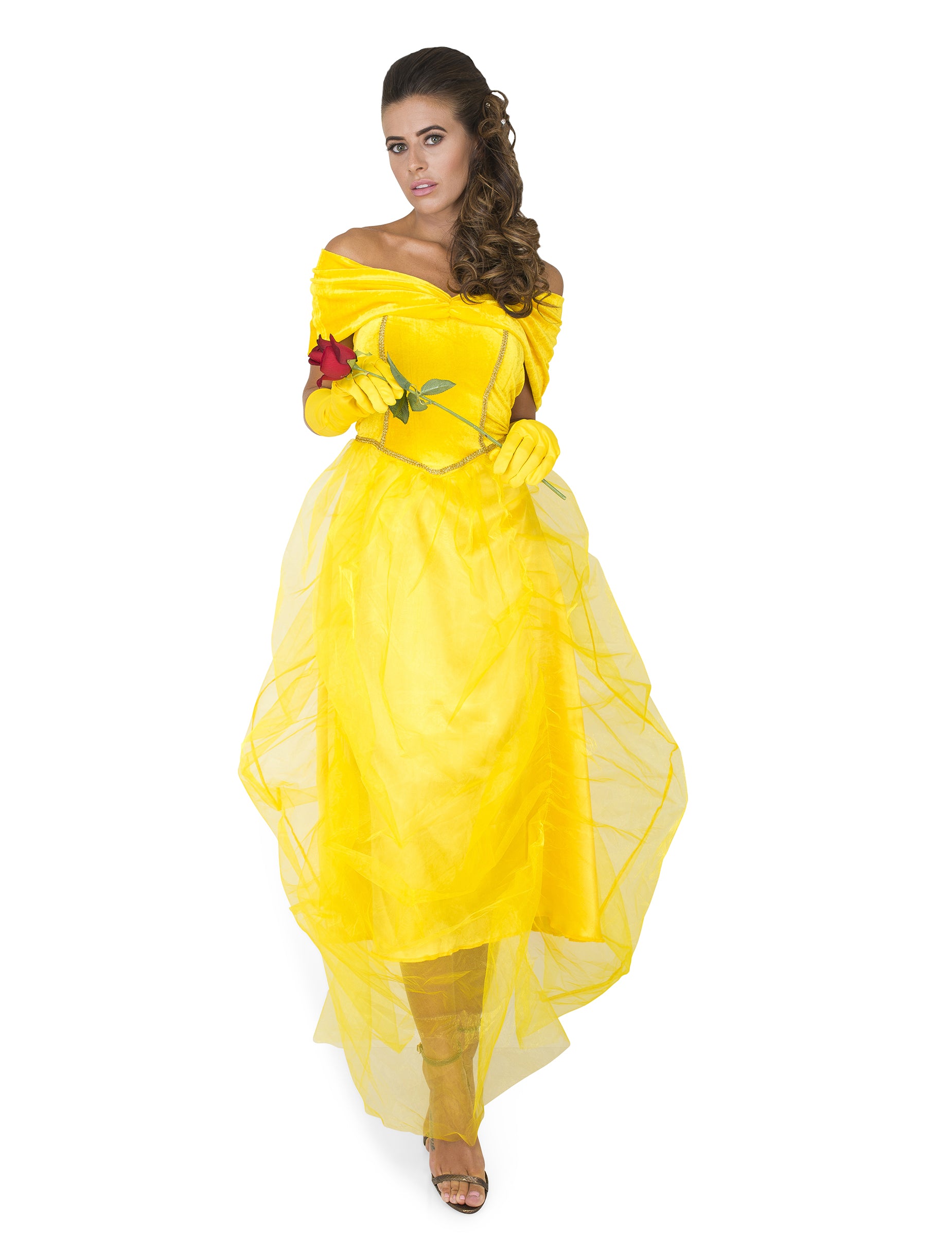 Ez a gyönyörű női hercegnő jelmez egy ruhából és egy pár kesztyűből áll. A sárga ruha hosszú, szalagos ujjakkal a csupasz vállakért. A ruha alján csinos sárga tüllfátyol van. A kesztyű hosszú, és a ruhához illő sárga. Ez a ruha ideális lesz ahhoz, hogy a legszebb legyen egy divatos bulin a barátokkal!