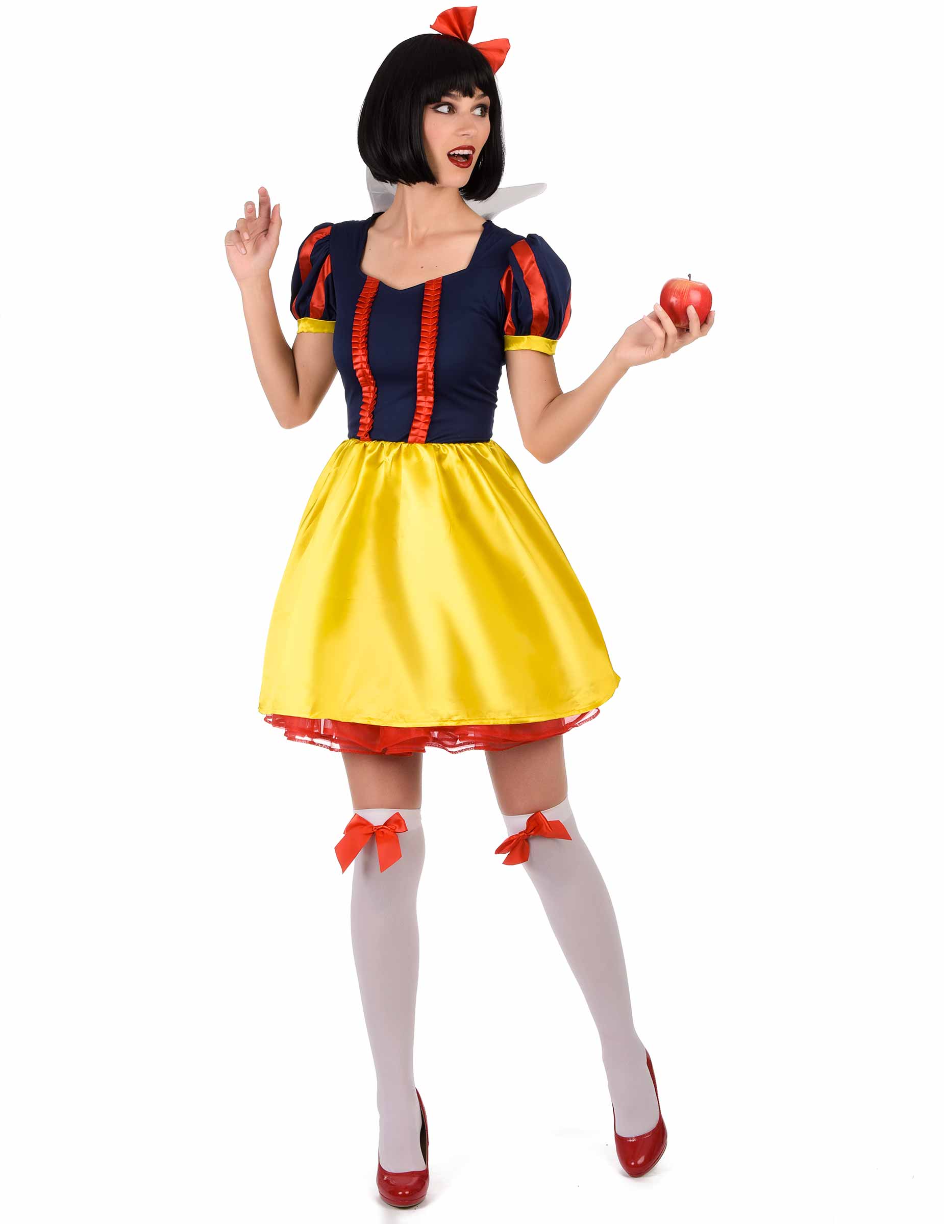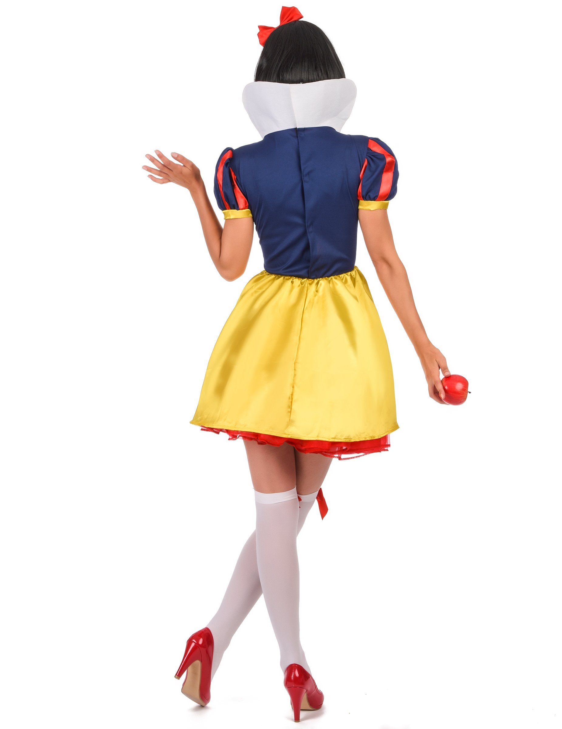 Ez a hercegnő a 7 törpe számára a nők számára egy nagyon rövid ruhát kínál (alma, harisnya, cipő, paróka, alsónadrág és csomó nem tartozik). A rövid és puffadt ujjú ruha kék tengerészgyalogos a mellszobornál, és az elülső részén piros szatén csíkokkal rendelkezik. Az ujjait fényes sárga anyagú és piros színű csíkos szélű. A karbantartást a Scratch biztosítja, és lehetővé teszi egy félig merev, fehér szatén fenntartását. A méret rugalmas az Ön kényelme érdekében, és egy gyönyörű sárga szoknyába terjed ki, szatén reflexiókkal. A karnevál vagy a tündérmese hercegnőjéhez ez a szexi álruhás tökéletes lesz!