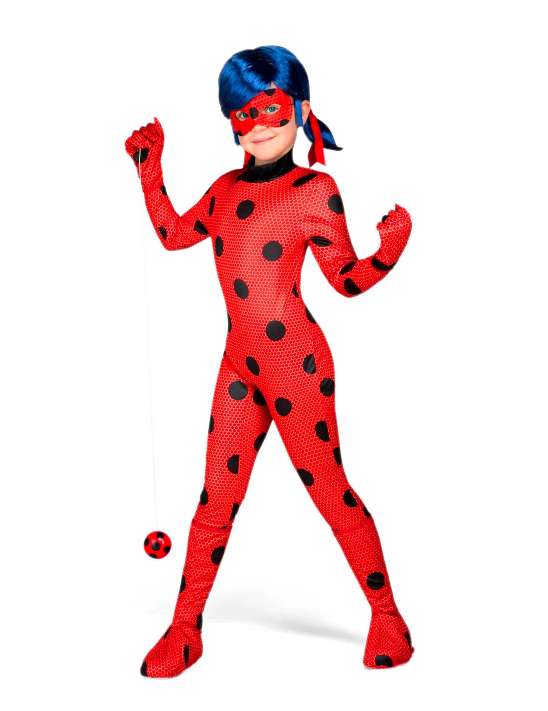 Ez a Lady Bug csodálatos álruhája a hivatalos engedély alapján gyermekeknek szól, maszkból, kesztyűből, parókából, kombinációból, fülbevalókból és yo-yo-ból áll. A test közelében lévő kombináció piros, fekete pöttyös pontokkal, például katicabogárokkal, például farkasokkal, kesztyűkkel, csizmákkal és yo-yo-val. Egy sötétkék paróka, két alacsony paplanval, kiegészíti ezt a ruhát. A fülbevalók klipek, és nem kapható füleken viselhetők. Ezzel a teljes jelmezkel gyermeke képes lesz megtestesíteni kedvenc hősnőjét, karnevál alatt vagy születésnapjára a csodálatos témában.