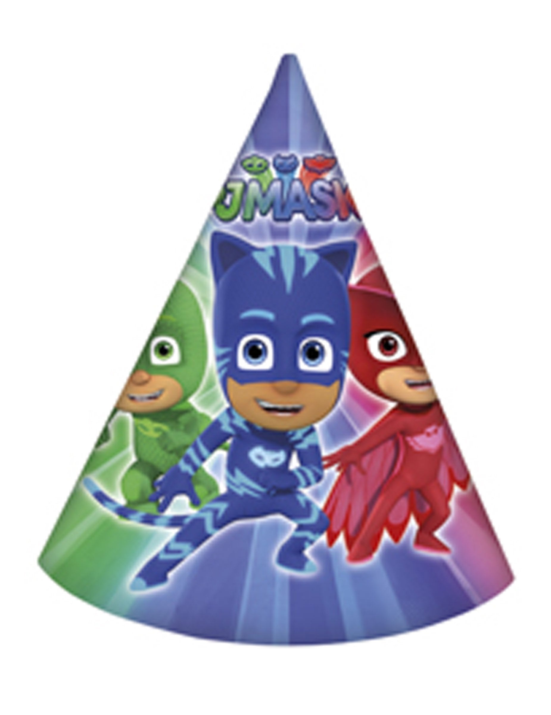 Ez a 6 ünnepi kalap hivatalos pizsamak alatt található. Kartonból készülnek, és éles alakúak. Könnyen megőrzik magukat a fején, amely rugalmasságra oldódik, hogy áthaladjon az álla alatt. A Bibou, a Yoyo és a Gluglu, a híres pizsamque szuperhős ruhájukban nyomtatják őket. Ezek az ünnepi sapkák elengedhetetlenek, ha gyermekei pizsamasques rajongóját sugallja!