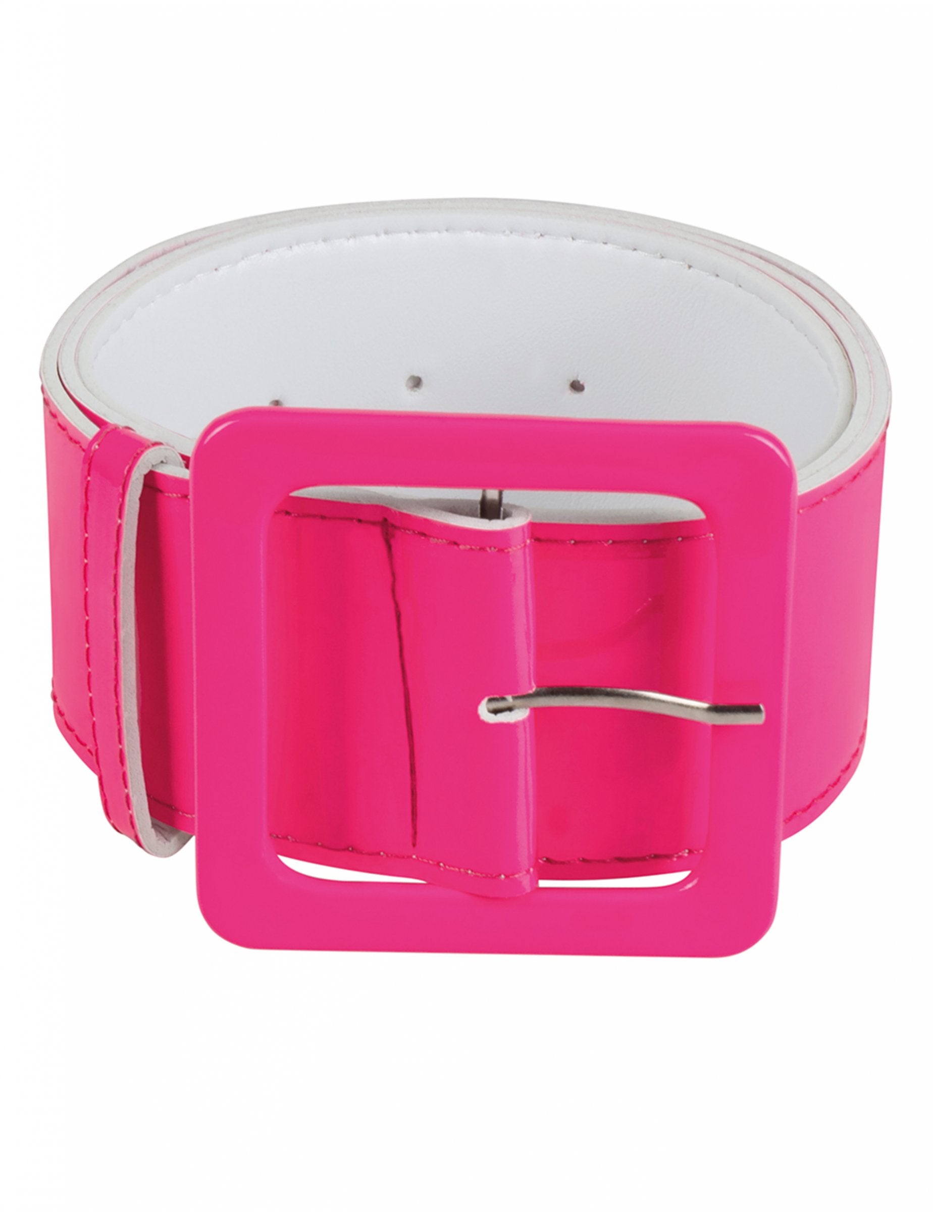 Ez fluoreszkáló rózsaszín öv Mérete 115 x 5,5 cm, és nagy hurok .