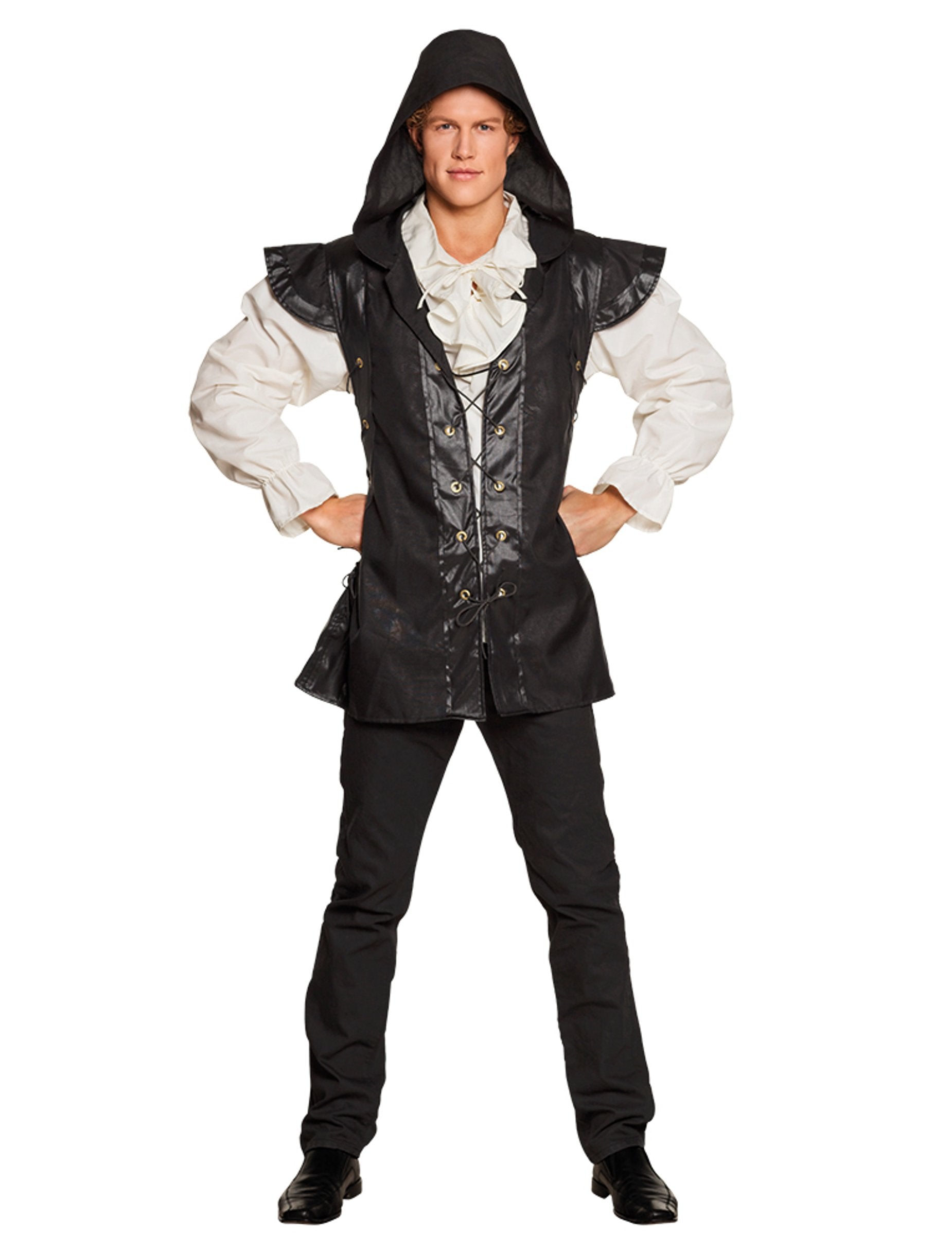 A felnőtt fa tárolására szolgáló álruhás kabátja motorháztetővel és blúzgal rendelkezik. A fehér blúz hosszú elasztikus ujja a csuklónál, hogy puffadt effektus legyen. Van egy Froufrou passz. A kabát, a bőr megjelenése és a vadállat fekete. Van válla és egy nagy motorháztetője. Végül, ez a kabát az elülső kötésnek köszönhetően bezárul. Ez az álruhás, hogy eldobja az erdőket, tökéletes lesz egy olyan bandit megtestesítésére, amely a gazdagok felé repül, hogy a szegényeket a karnevál vagy egy téma alatt adja meg!