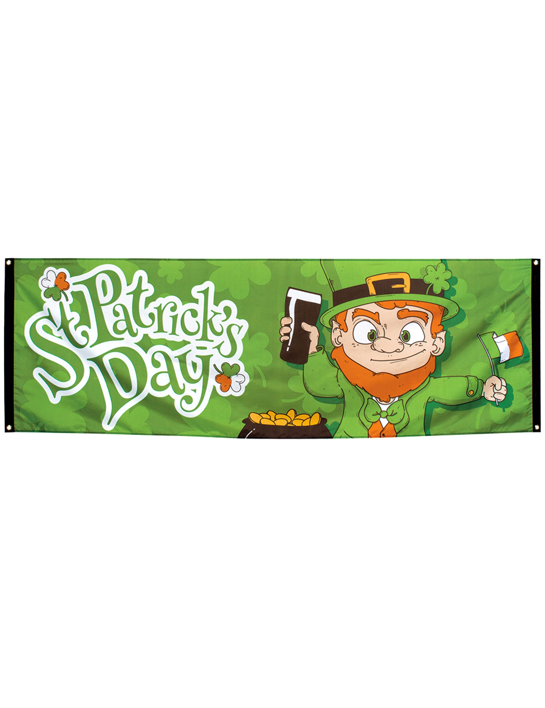 A Saint Patrick, a híres ír párt zászlója 220 cm hosszú, 74 cm széles. Ennek a zöld zászlónak a "Szent Patrik napja" felirat (Szent Patrick napja) is ábrázolja ennek az ír ünnepségnek a szimbólumait, mint például a három -seaf lóhere, a manó és annak kincse, egy korsó sör és az ír zászló ! Ez a gyönyörű szalaghirdetés tökéletes lesz az estek díszítéséhez a Saint Patrick témájáról!