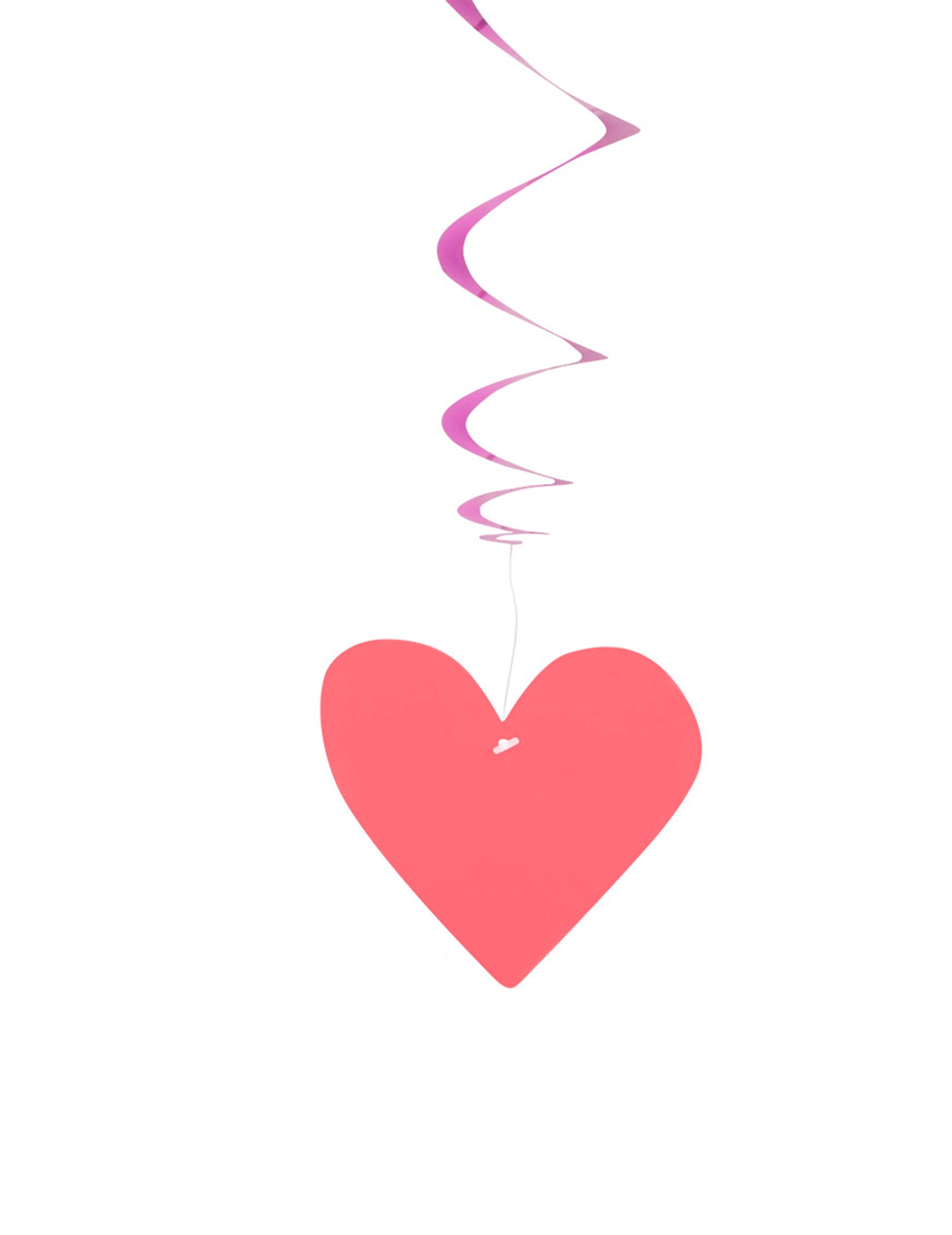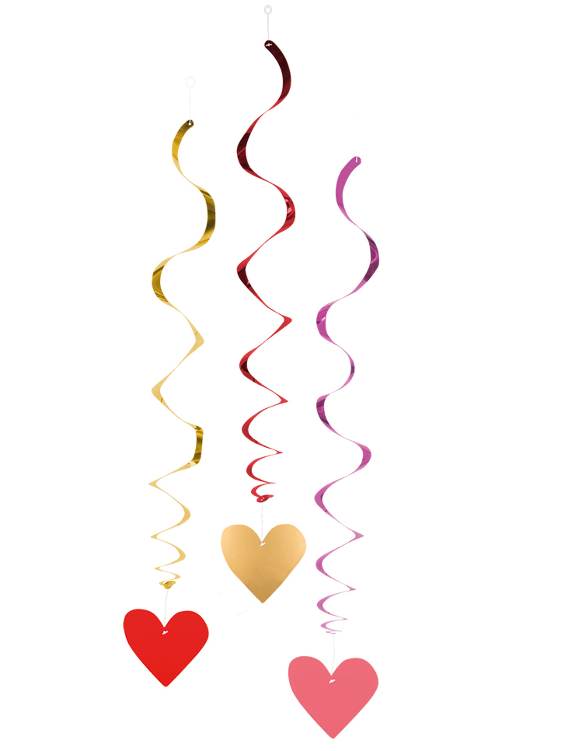 Ez a 3 spirál alakú dekoráció 85 cm -t mér. Többszínű és fémes, felfüggesztett szívvel. Tökéletesek lesznek a Valentin -napra vagy egy esküvőre.