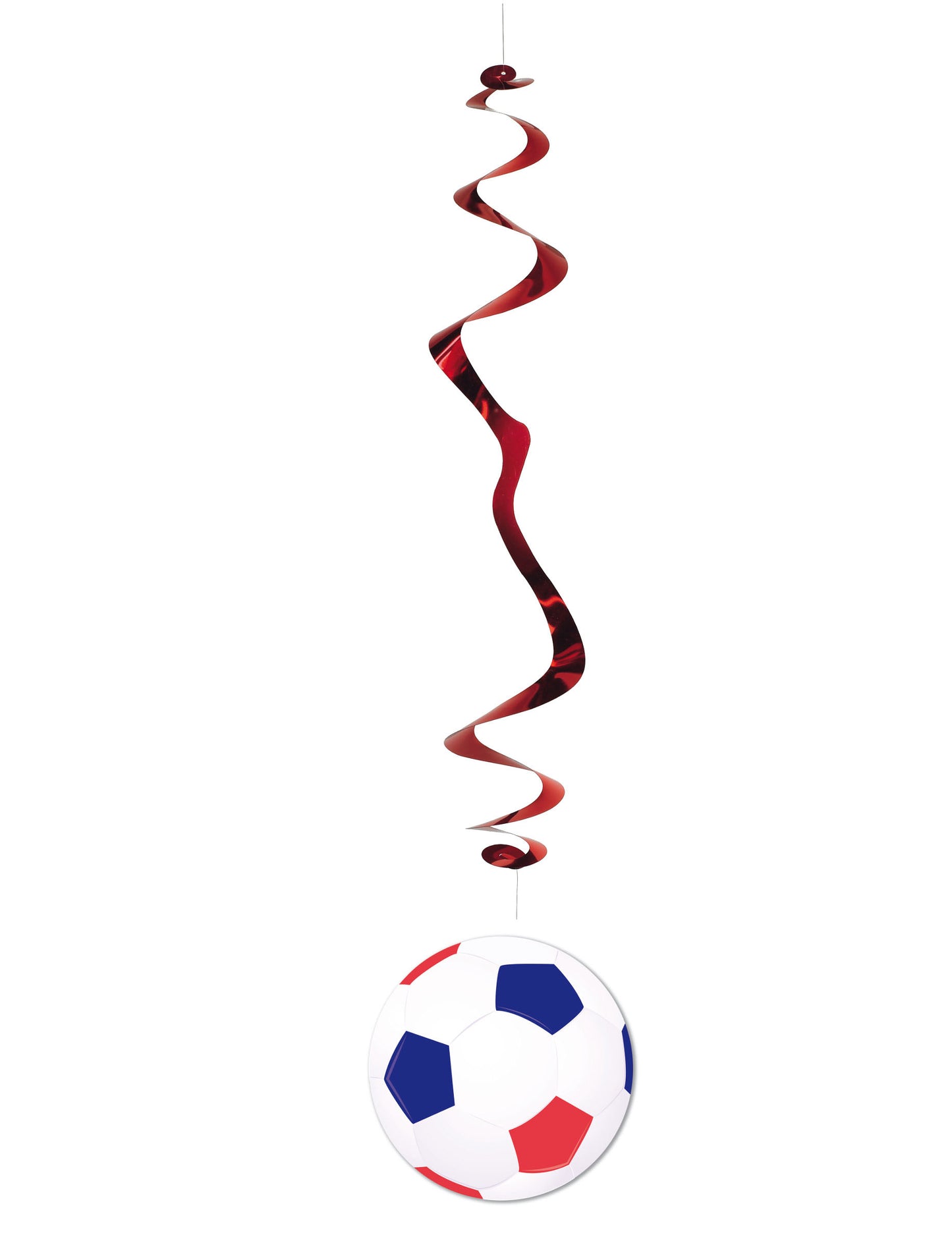 Ez a tétel 6 égésgátló felfüggesztésből áll. Körülbelül 80 cm -t mérnek, és piros spirálokkal és matricával díszítik, amely a francia kék fehér vörös színű labdarúgó -labdát képviseli. Ezek a tricolor felfüggesztések ideálisak lesznek a szoba dekorációjának befejezéséhez és a kedvenc csapatának támogatására a labdarúgó -világbajnokság alkalmával!
